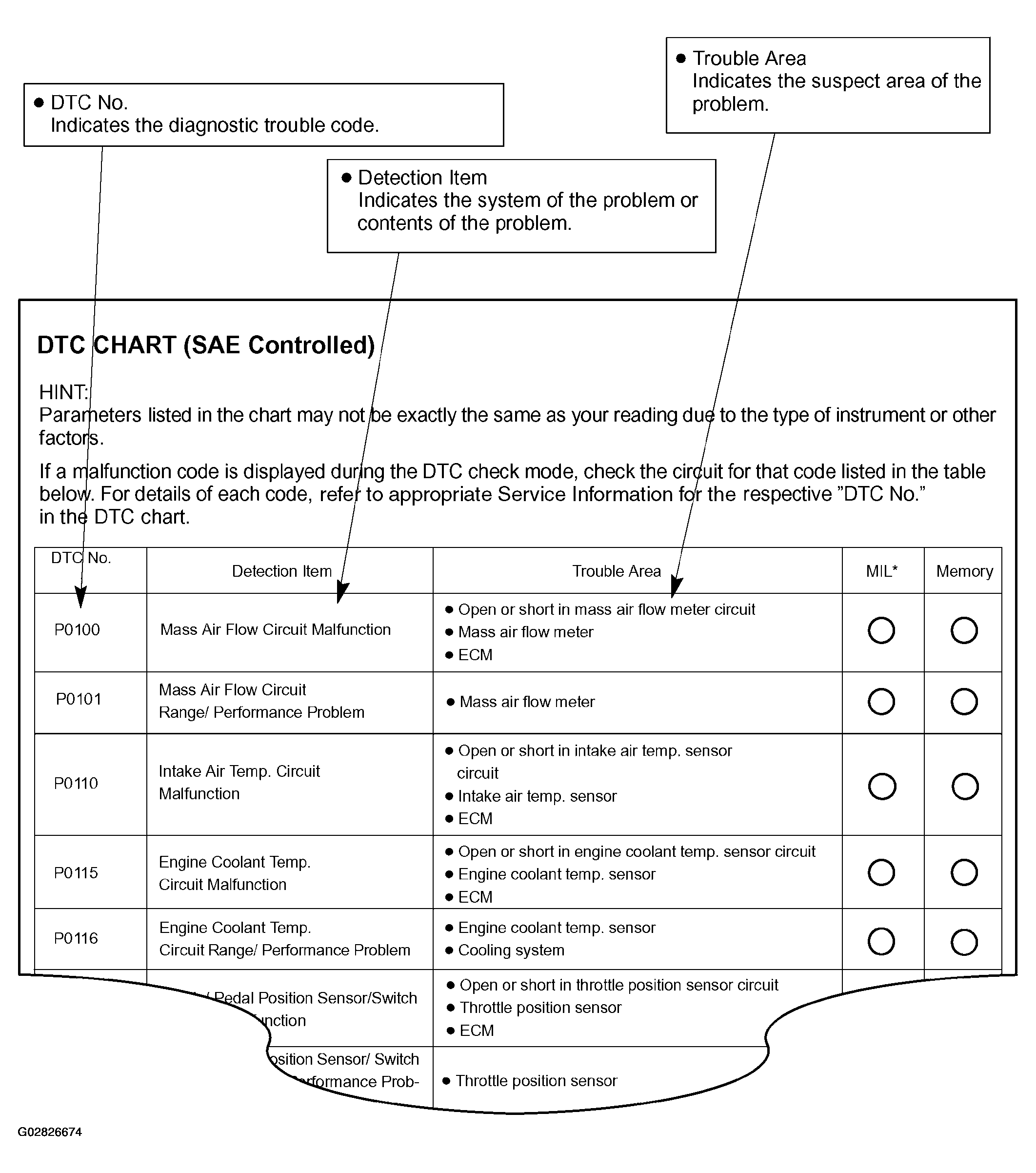 The inspection procedure is shown in Fig 7. This table permits efficient and accurate troubleshooting using the diagnostic trouble codes displayed in the diagnostic trouble code check. Proceed with troubleshooting in accordance with the inspection procedure given in the diagnostic chart corresponding to the diagnostic trouble codes displayed. The engine diagnostic trouble code chart is shown in Fig 7 as an example.