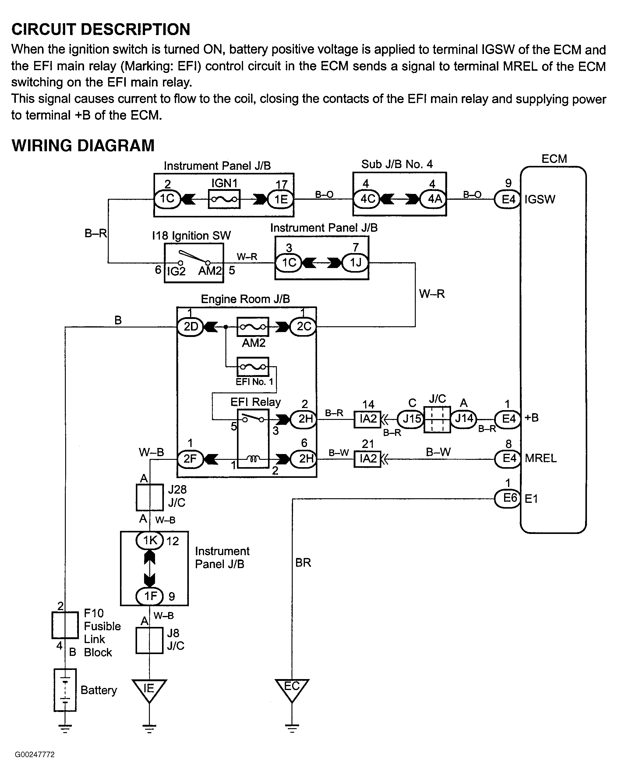 Fig 1: Engine Control Module Power Source Circuit Description & Diagram (Sequoia)