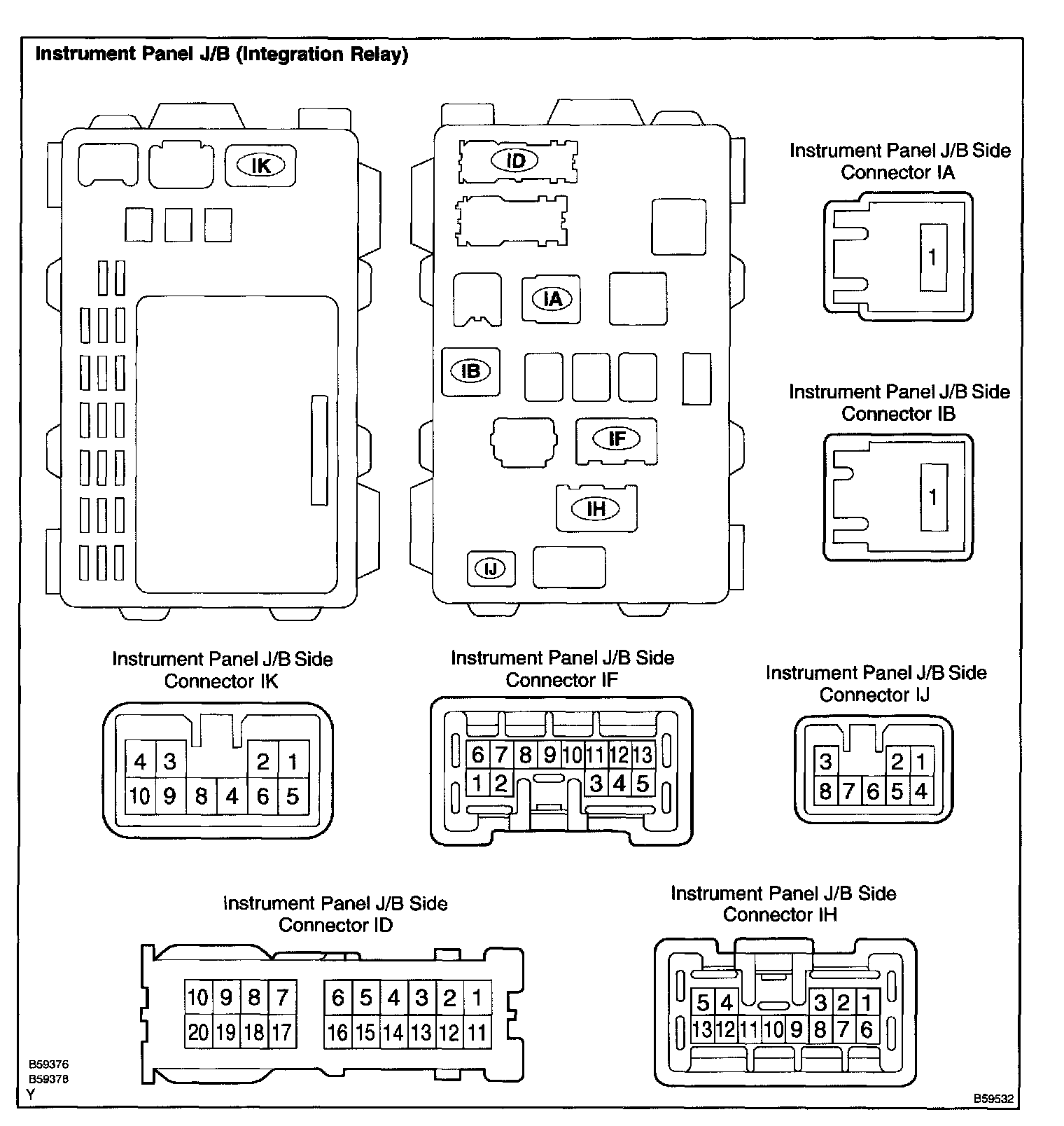 b. Disconnect connectors ID, IF, IH and IJ of the instrument panel J/B.