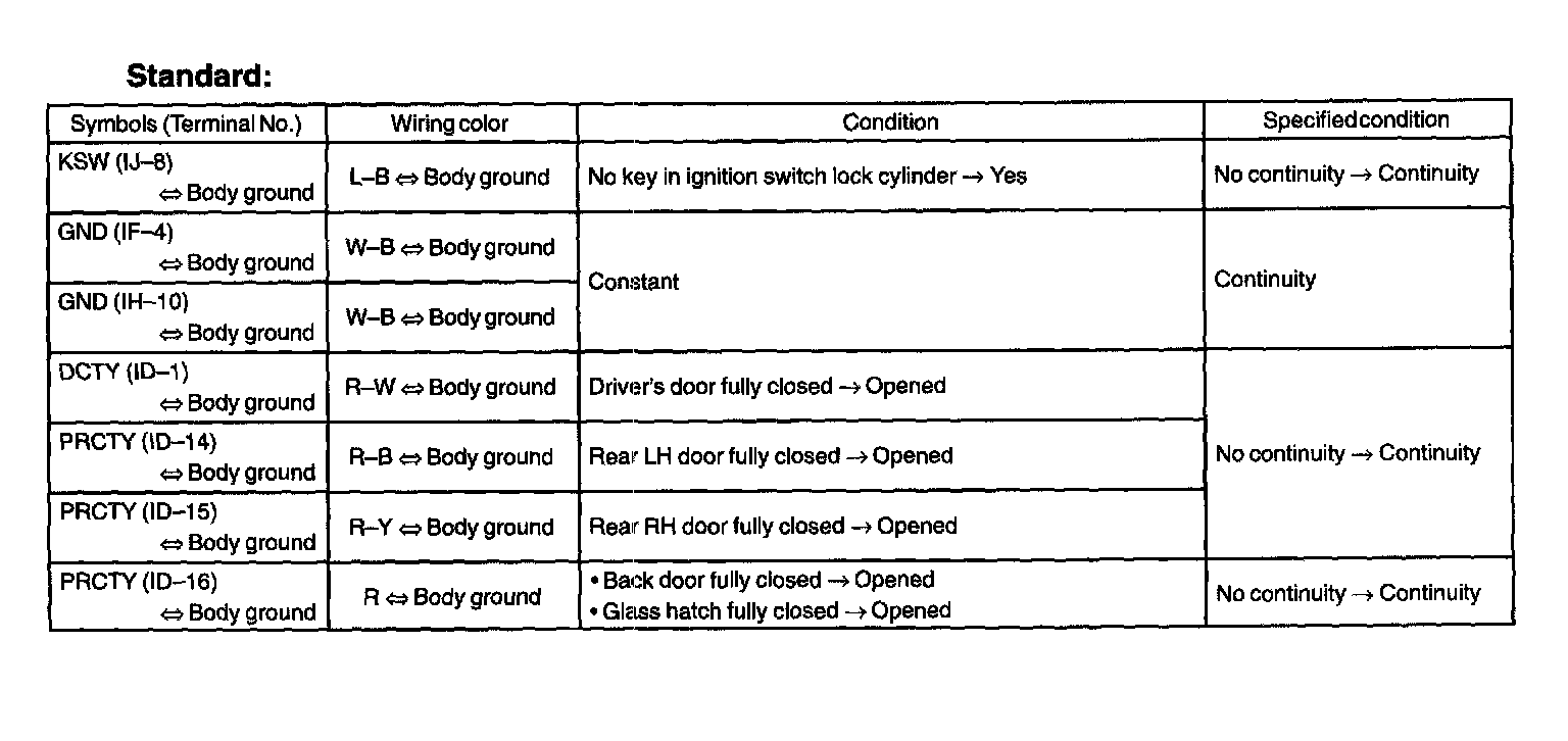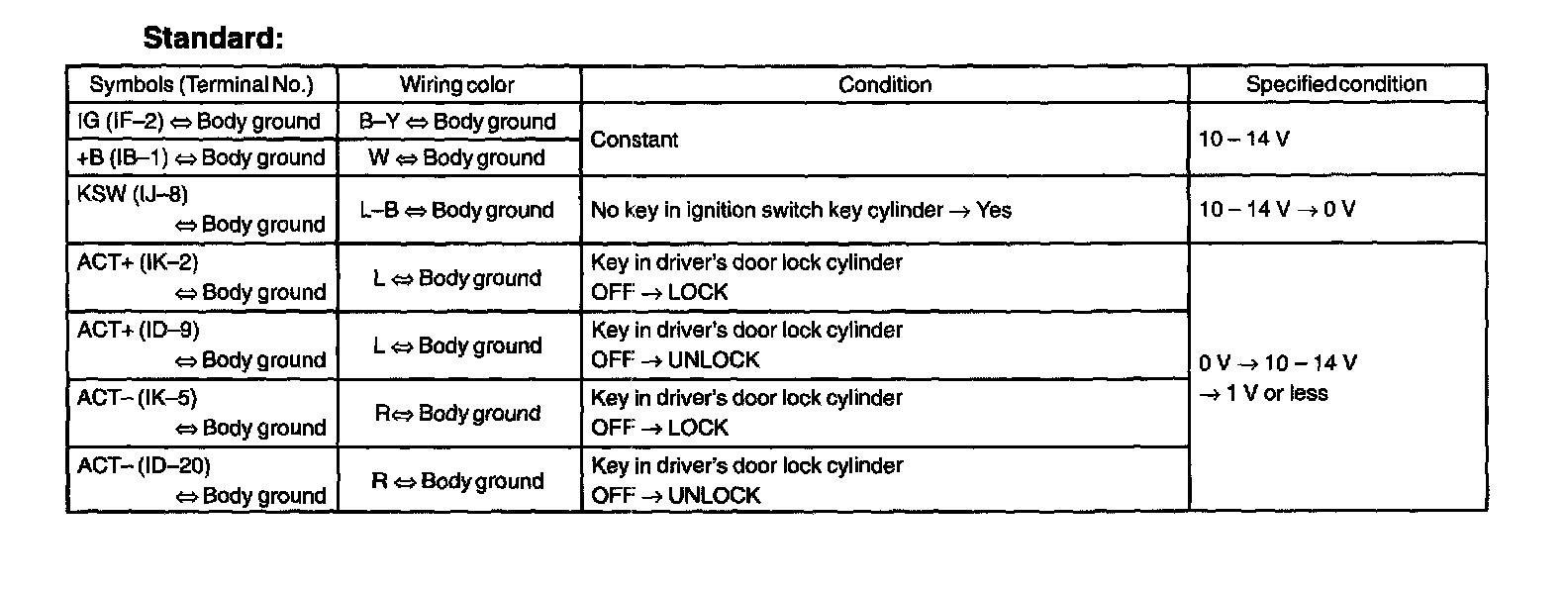 Home >> Toyota >> 2003 >> Matrix 2WD L4-1.8L (1ZZ-FE) >> Repair and Diagnosis >> Body and Frame >> Locks >> Power Locks >> Power Door Lock Control Module >> Testing and Inspection