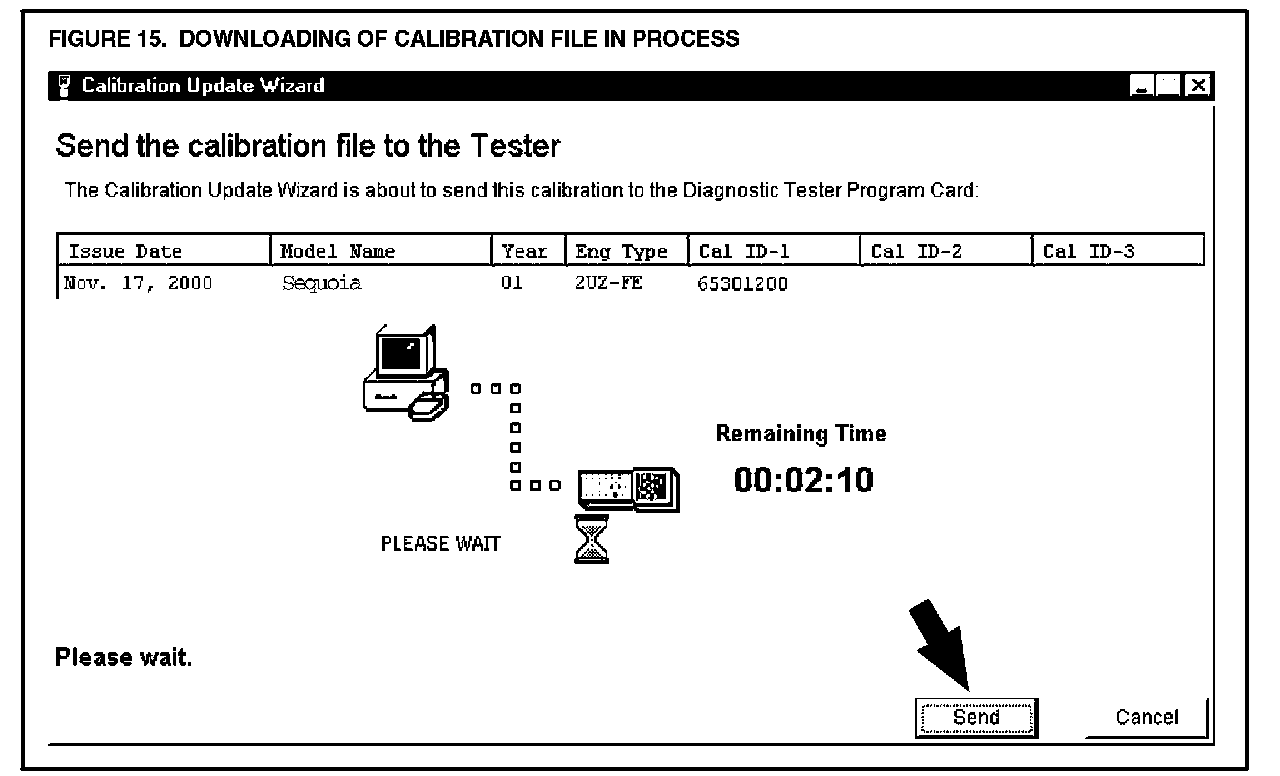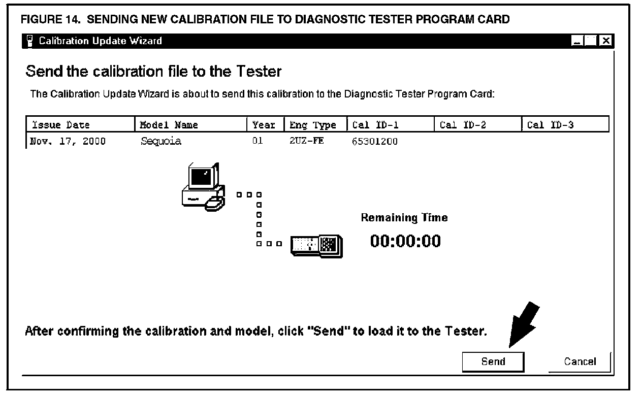 K. Confirm the calibration file to be sent to the Diagnostic Tester Program Card (Figure 14). Click SEND.