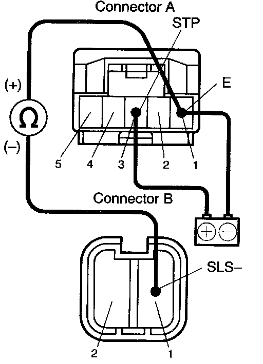 c. Connect STP terminal to the batteries positive (+) terminal, and E terminal to the battery negative (-) terminal, and apply about 12 Volts between STP - E terminals.