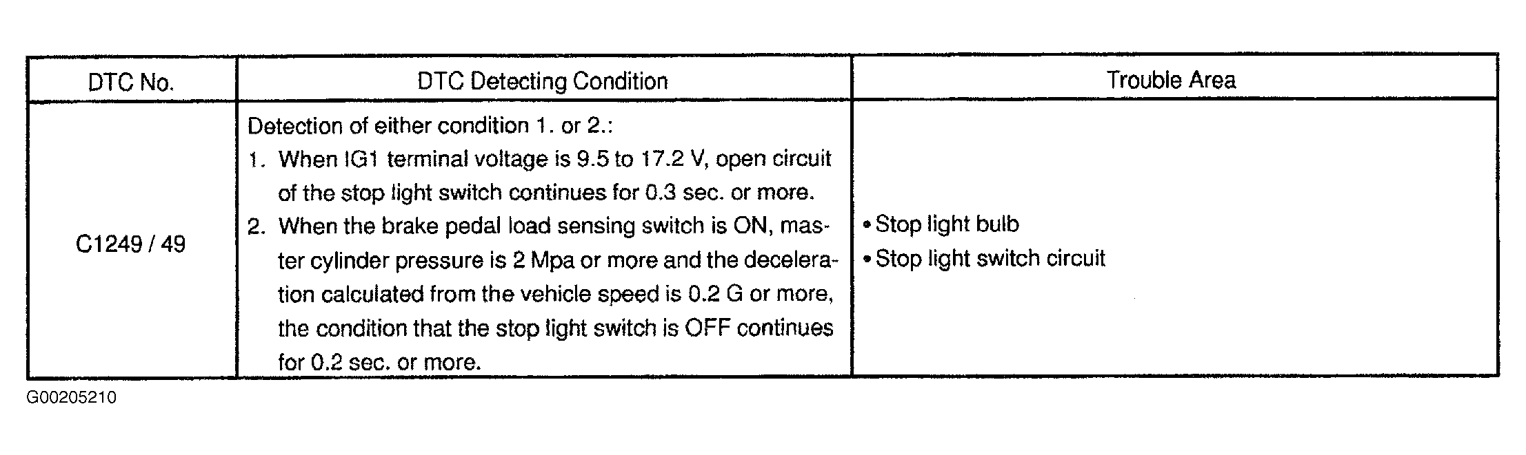 Home >> Toyota >> 2003 >> Matrix Base, 4WD >> Repair and Diagnosis >> External Pages >> Different car >> Section 153 (Anti-Lock Brake System) >> Diagnostic Tests >> DTC C1249/49: Stop Light Switch Circuit >> Circuit Description