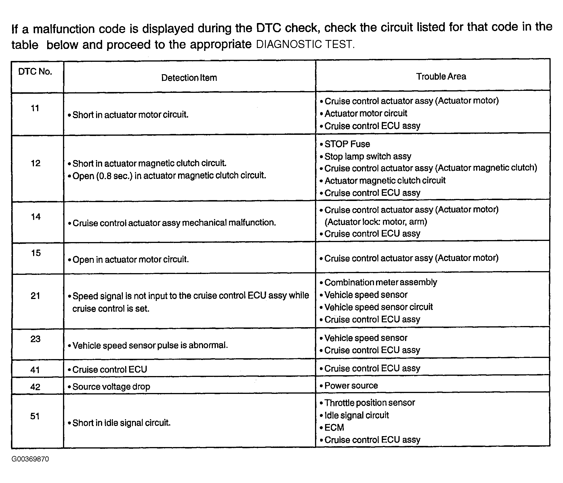 If a malfunction code is displayed during the DTC check, check the circuit listed for that code in the table below and proceed to the appropriate DTC. See Fig 1.