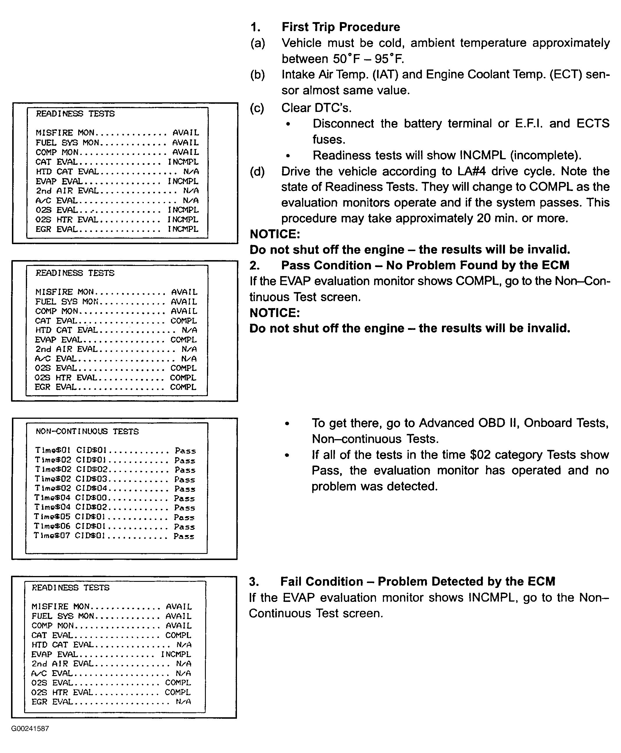 Fig 1: DTCs P0440 & P0442 Confirmation Readiness Test (1 Of 2)