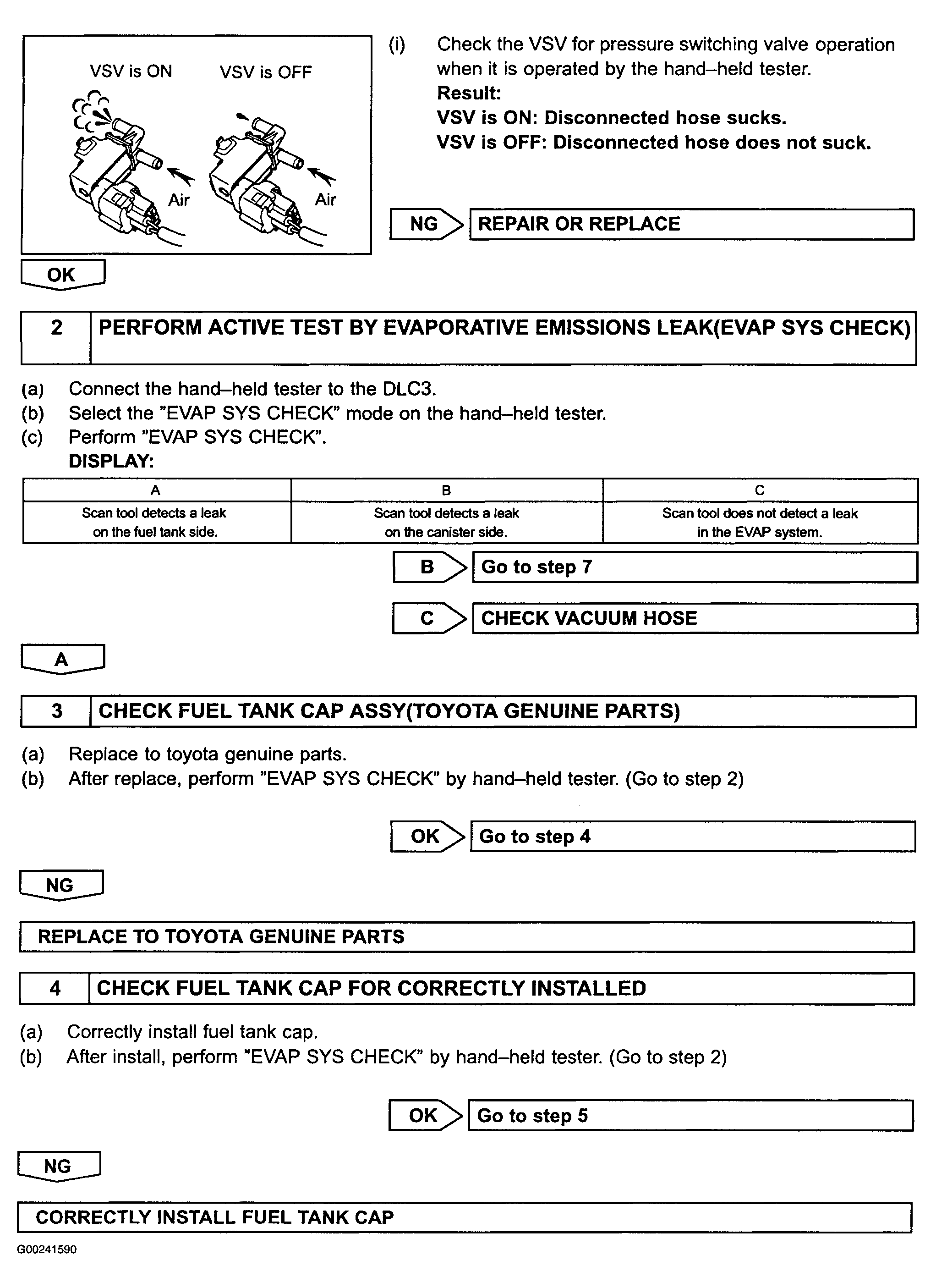 Fig 2: DTCs P0441 & P0446 Diagnostic Procedure (Using Hand-Held Tester, Steps 5-8)