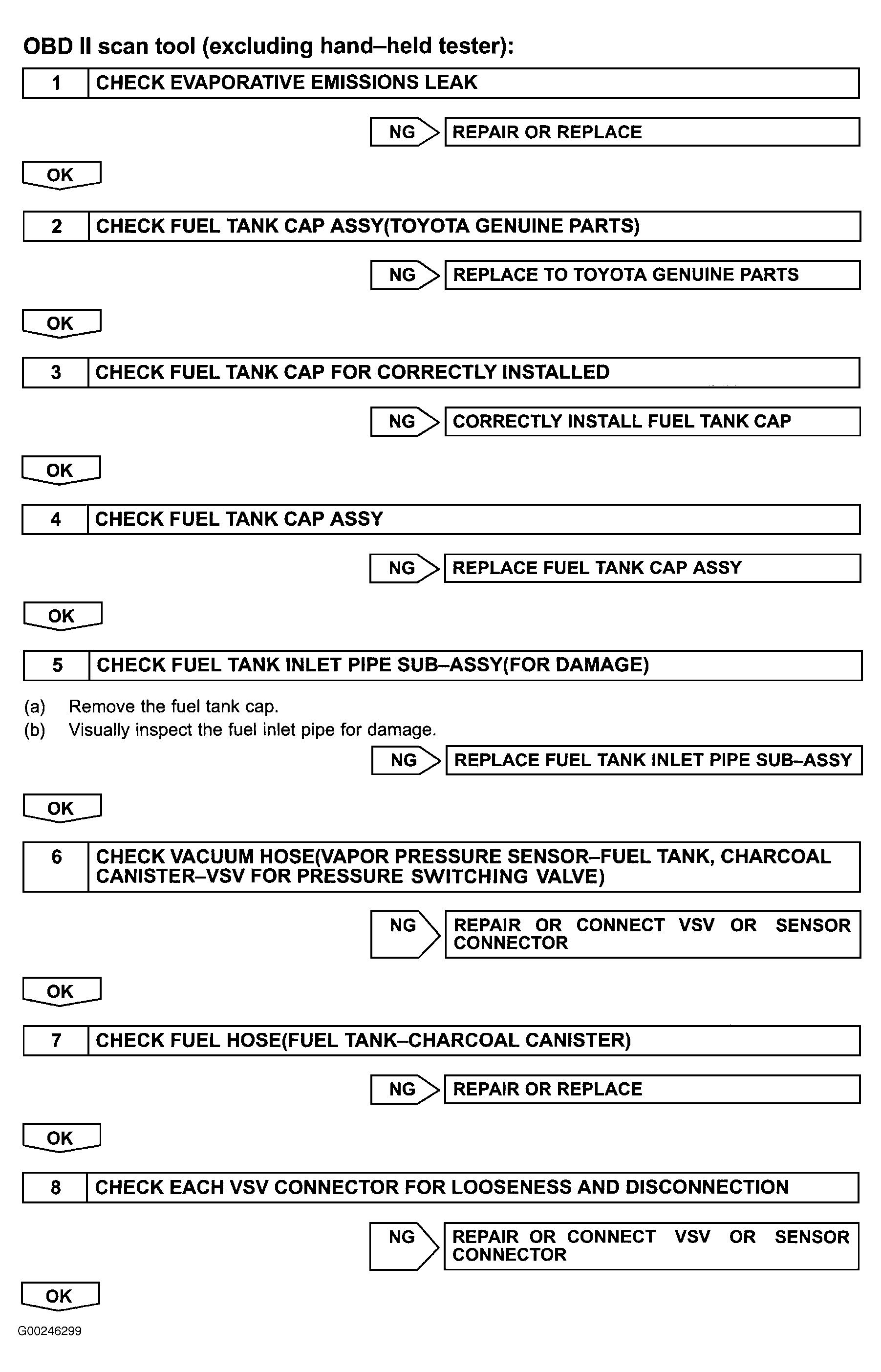 Fig 7: DTCs P0441 & P0446 Diagnostic Procedure (Using OBD II Scan Tool, Steps 1-8)