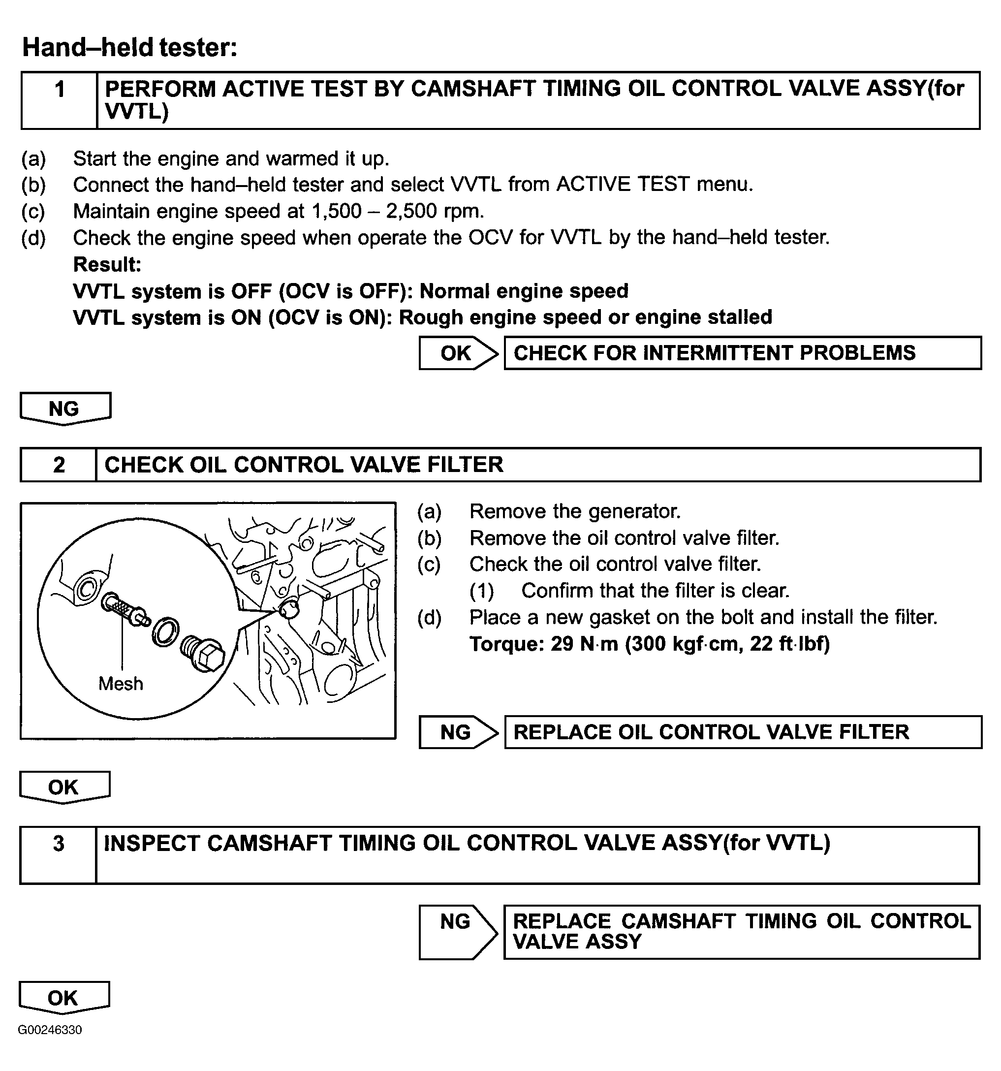 Home >> Toyota >> 2003 >> Matrix Base, FWD, Automatic >> Repair and Diagnosis (Single Page) >> Engine Performance >> System >> Engine Control System Self Diagnostics >> Diagnostic Tests >> DTC P1690: OCV For VVTL Circuit Malfunction (Matrix 2ZZ-GE Engine Model Only) >> Diagnosis & Repair