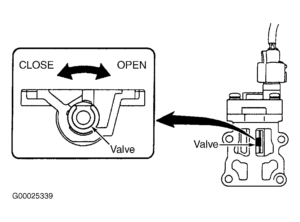 3. Turn ignition on. Check that valve on inside of IAC valve moves from half open to fully closed, fully open and then returns to half open within.5 second. See Fig 1. Turn ignition off. If IAC valve operates as specified, wiring circuit, Engine Control Module (ECM) and IAC valve are okay.