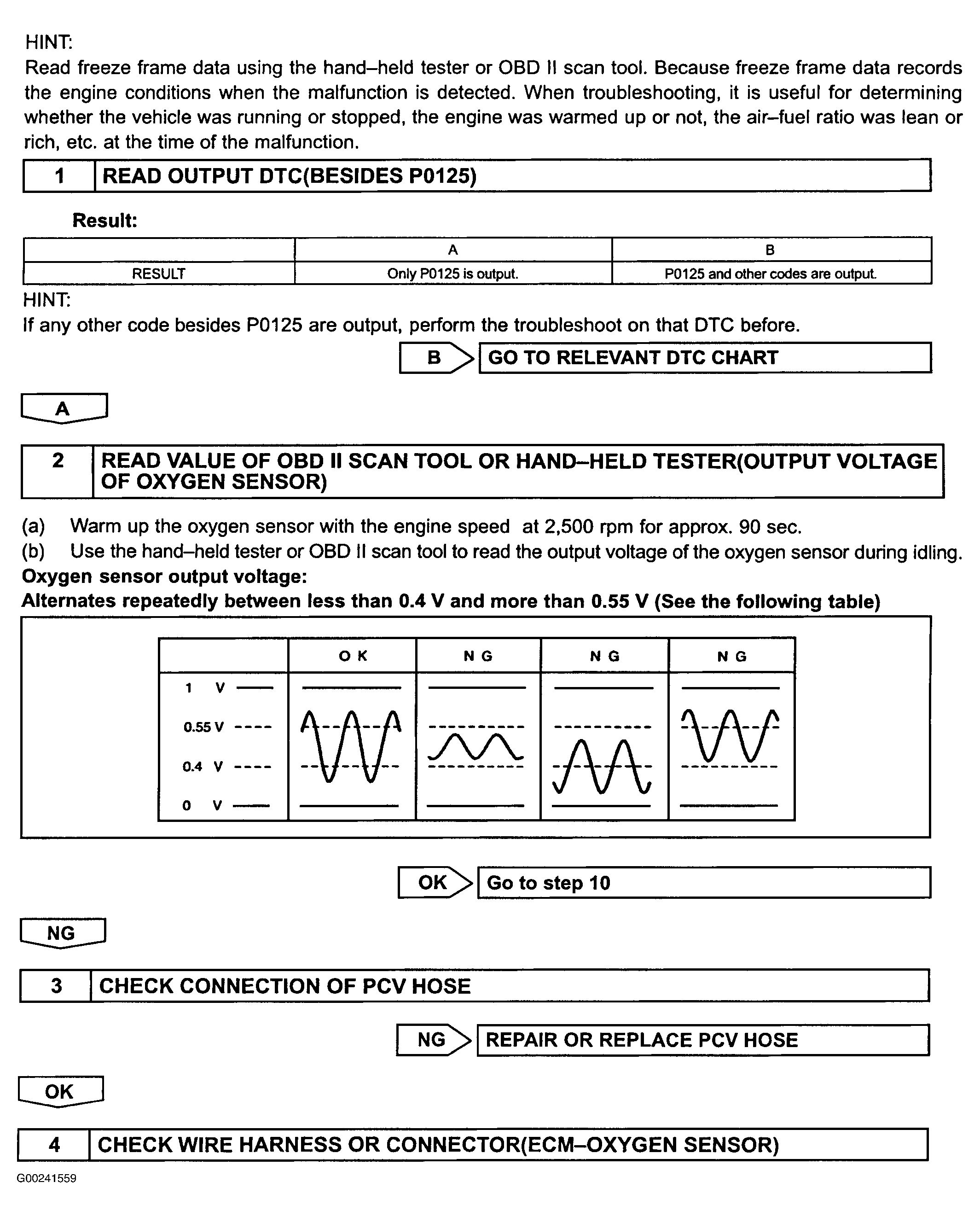 Fig 4: DTC P0125 Diagnostic Procedure (Steps 1-4)