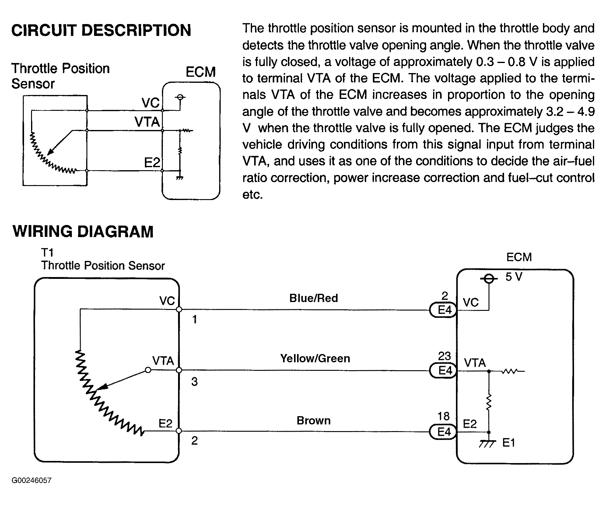 For testing of throttle position sensor, see Fig 1-Fig 4 . To check for intermittent problems, see INTERMITTENTS in TROUBLE SHOOTING - NO CODES article. Before replacing ECM, check ECM connectors and ground circuits. See ENGINE CONTROL MODULE POWER & GROUND CIRCUITS under COMPUTERIZED ENGINE CONTROLS.