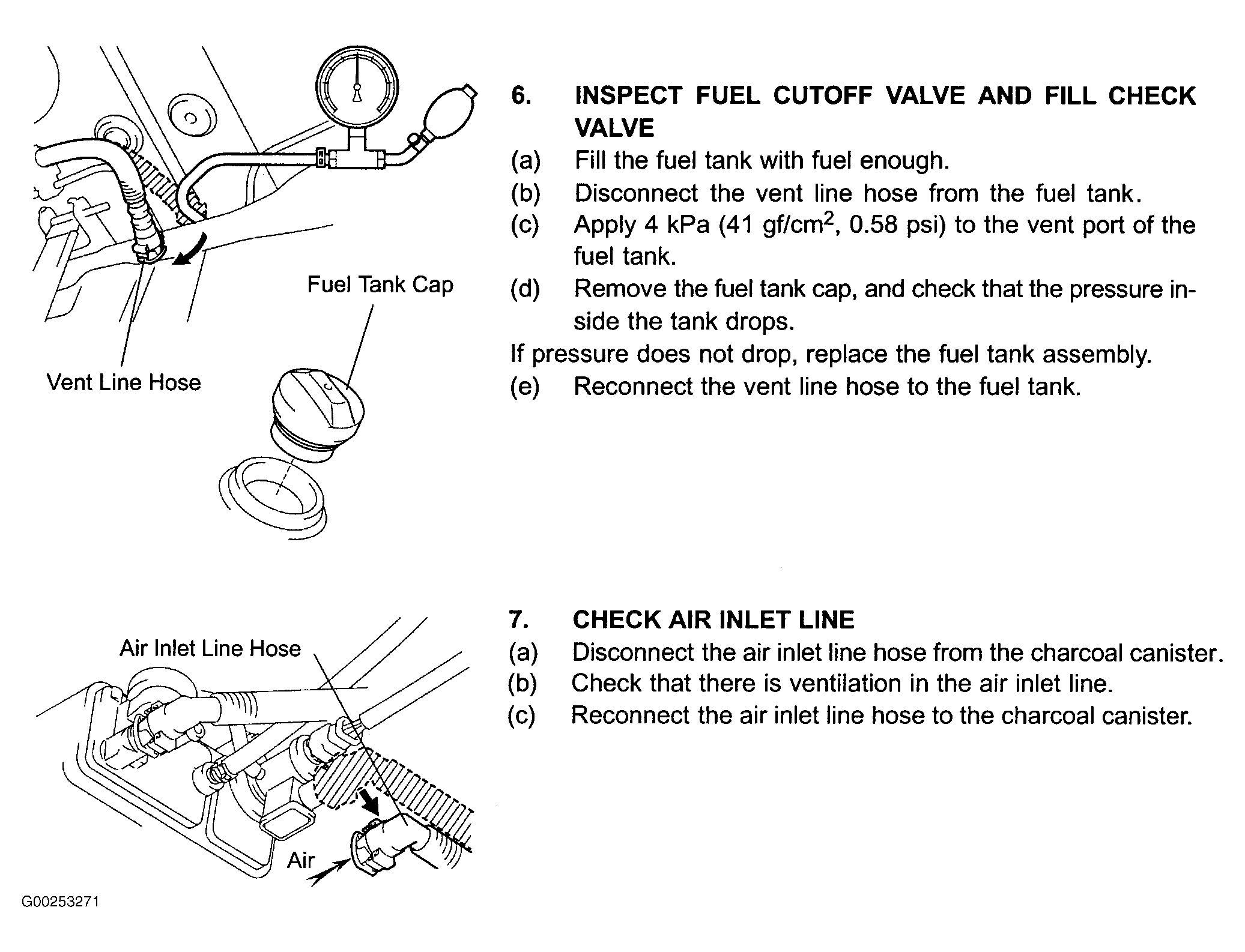 Home >> Toyota >> 2003 >> Matrix Base, FWD, Automatic >> Repair and Diagnosis >> External Pages >> Different car >> Section 111 (Engine Controls - System & Component Testing - V6 & V8) >> Emission Systems & Sub-Systems >> Fuel Evaporative System >> Fuel EVAP System Test (4Runner)