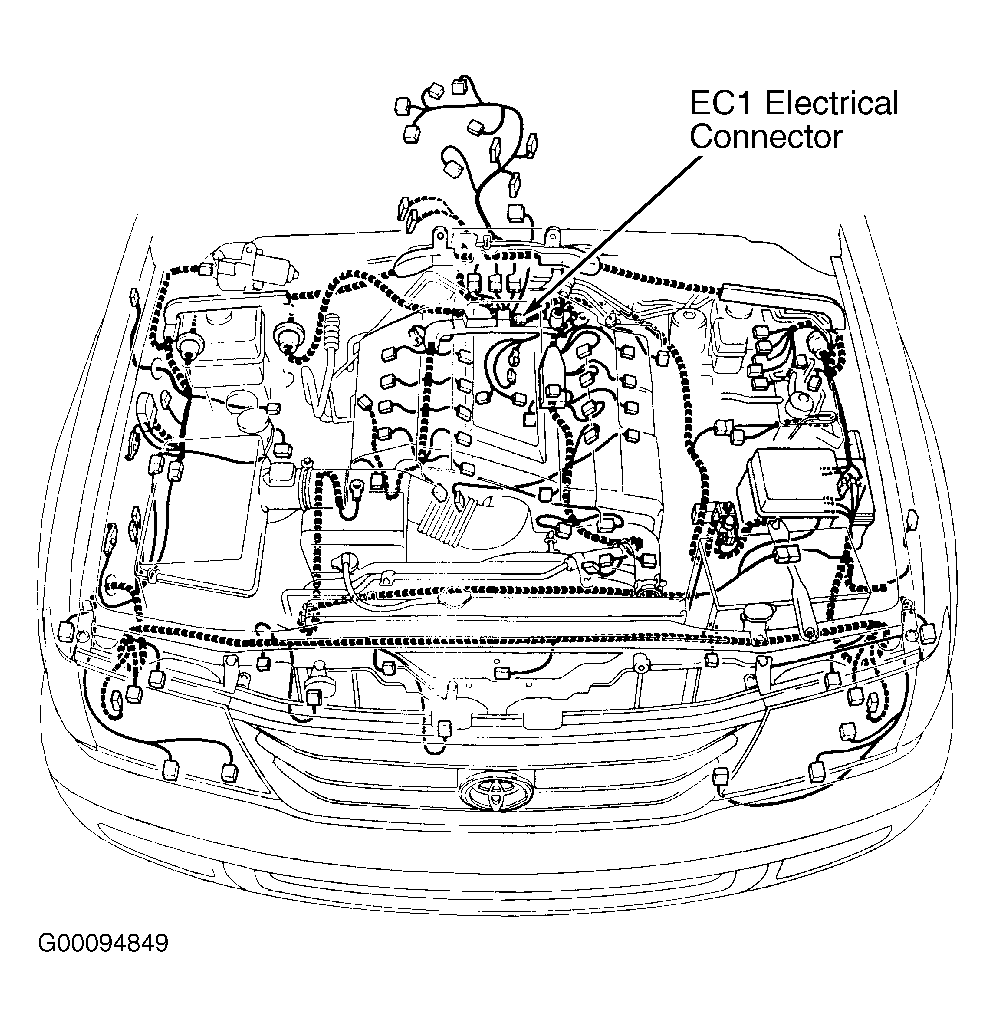 - Connect Toyota hand-held tester or scan tool to Data Link Connector (DLC) No. 3 at driver's side of instrument panel. See Figure. Disconnect EC1 electrical connector. See Figure. EC1 electrical connector is an in-line Black electrical connector located near rear of intake manifold.