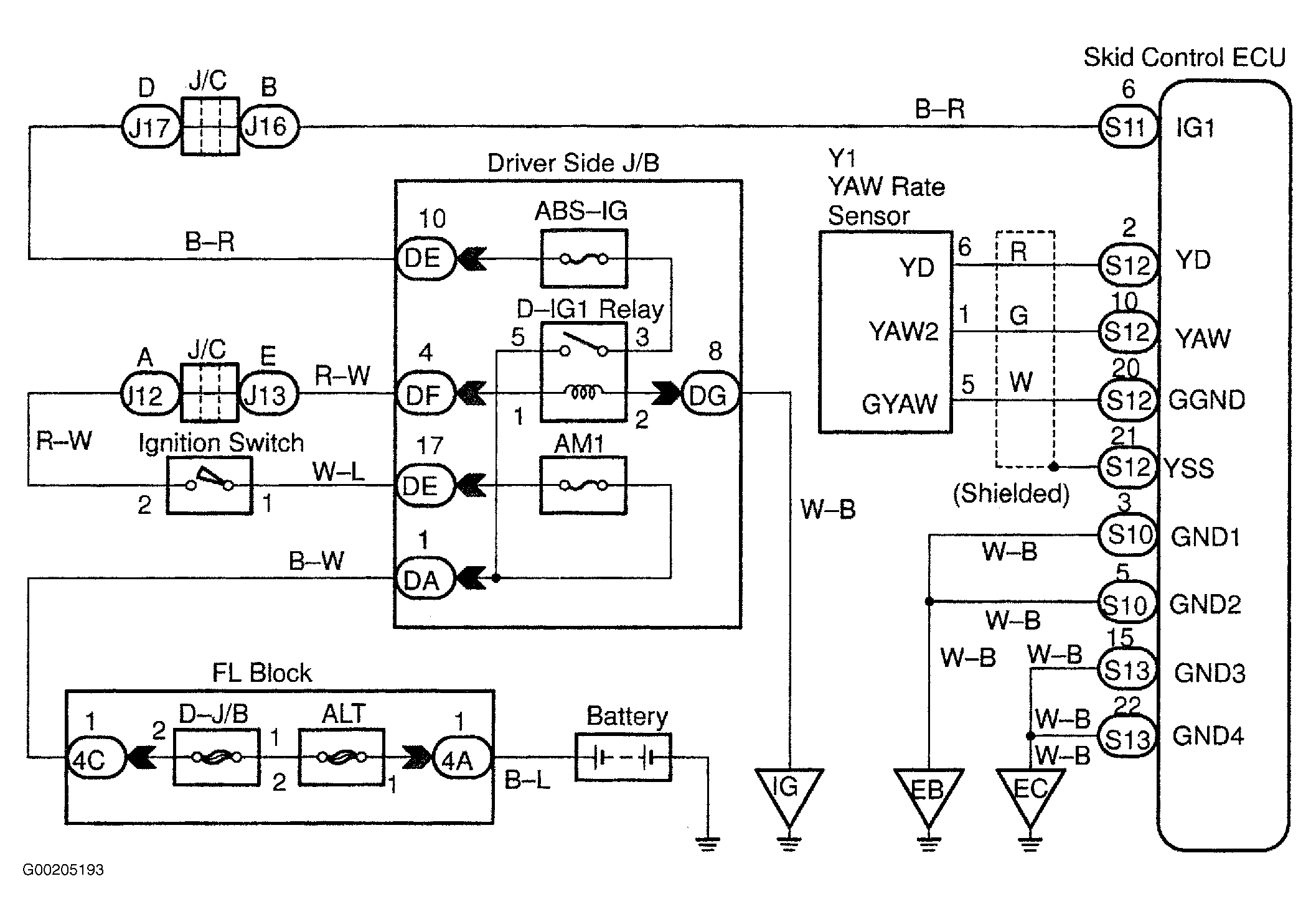 Fig 1: Yaw Rate Sensor Circuit Wiring Diagram