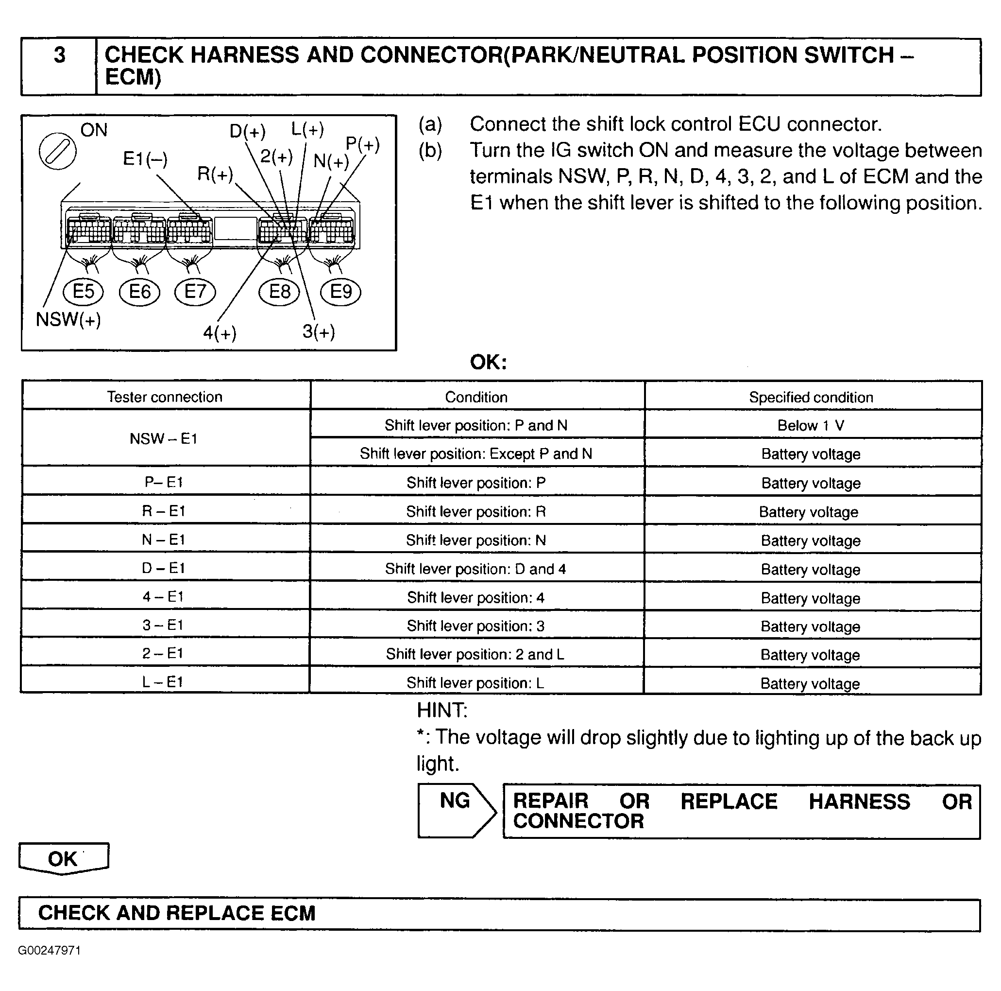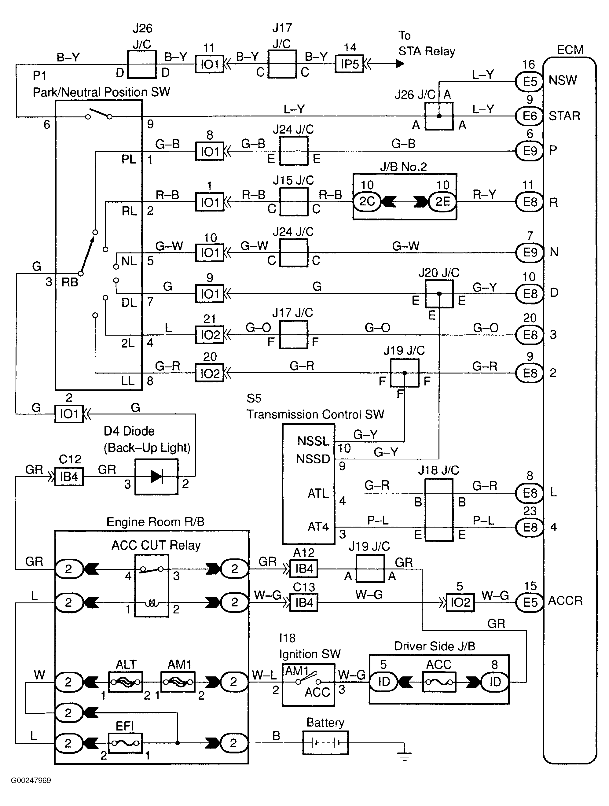 Fig 1: Transmission Range Sensor Circuit Wiring Diagram