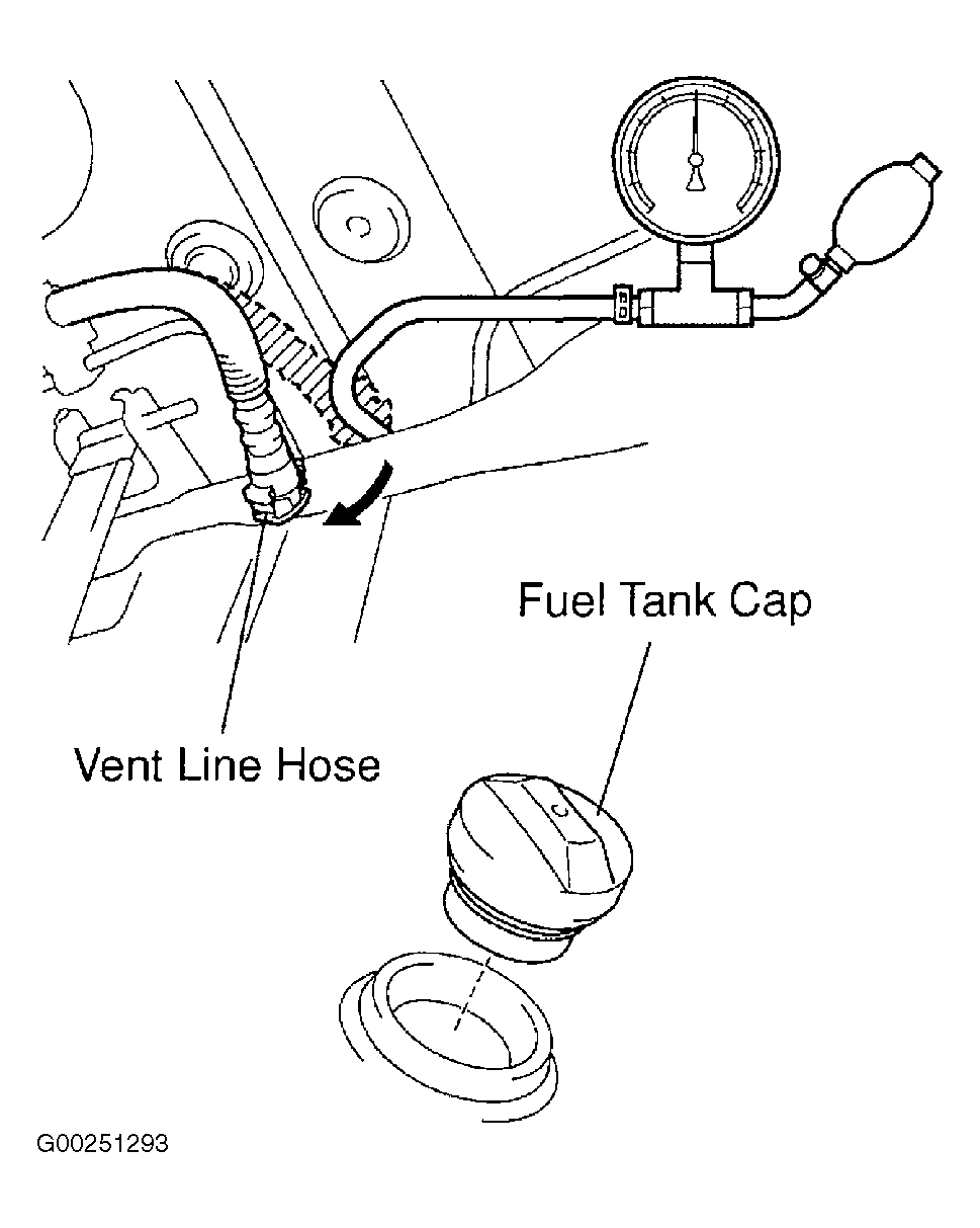 - Ensure fuel tank is full. Disconnect vent line hose from fuel tank.