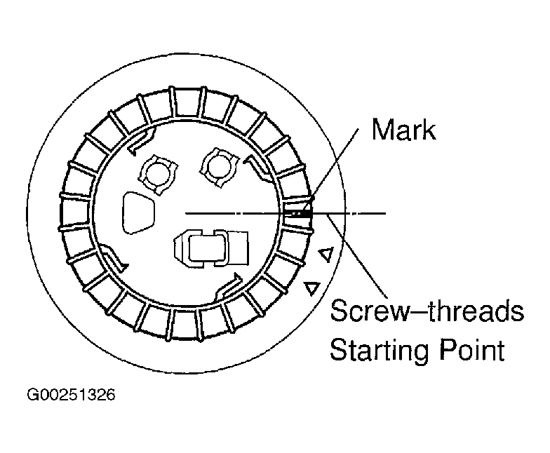 - Using a NEW retainer, align mark on retainer with screw threads starting point of fuel tank. See Fig 3.