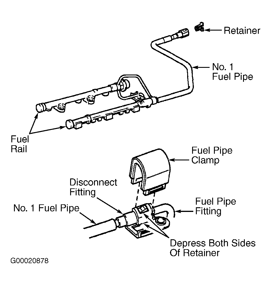 - Purchase No. 1 fuel pipe (part No. 23801-20070) from parts department. No. 1 fuel pipe is the fuel pipe that fits between fuel rail and fuel pipe fitting. Remove fuel pipe connector from end of NEW No. 1 fuel pipe. See Figure.