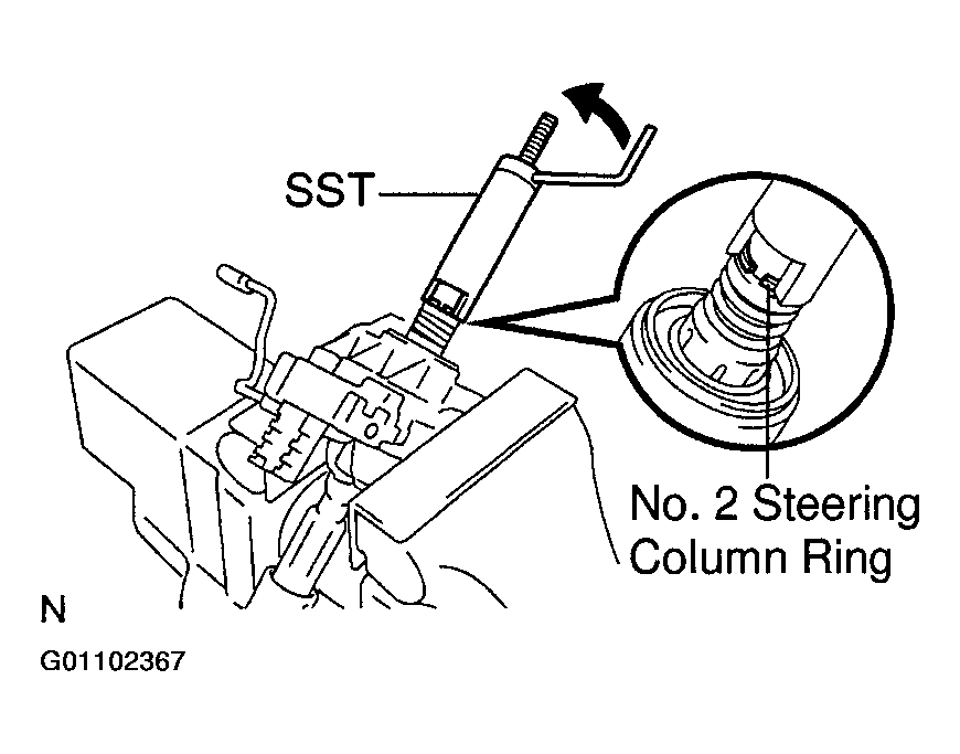 4. Using SST, push down the No. 2 steering column ring until it fits into the shaft groove and install the main shaft assembly.