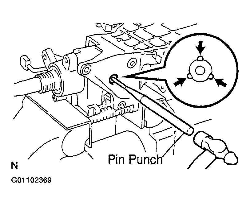 5. Using a punch and a hammer, tap in the No. 2 tilt steering bolt.