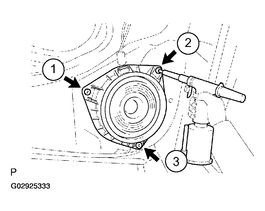 - Using an air riveter or hand riveter, 3 new strike rivets install the rear speaker assy to the rear door panel.NOTE: Install the new strike rivet in following order shown in Fig 2 to install the rear speaker assy.NOTE: