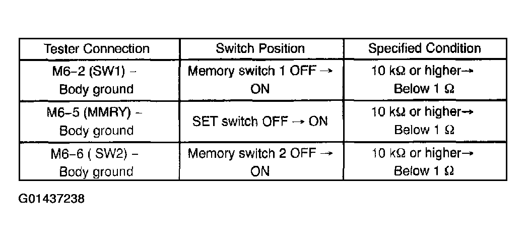 Home >> Toyota >> 2003 >> Matrix Base, FWD, Automatic >> Repair and Diagnosis >> External Pages >> Different car >> Section 455 (Front Power Seat Control System (With Memory) - Diagnosis) >> Memory Switch Circuit >> Inspection Procedure