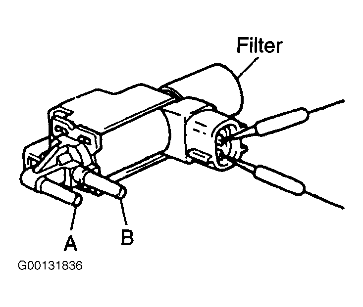 3. Apply battery voltage across terminals. Check that air flows from port "B" to port "A".
