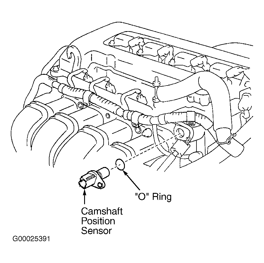 - Camshaft position sensor may also be referred to Variable Valve Timing (VVT) sensor. Camshaft position sensor is located just above intake manifold on cylinder head, at flywheel end of engine. See Figure.