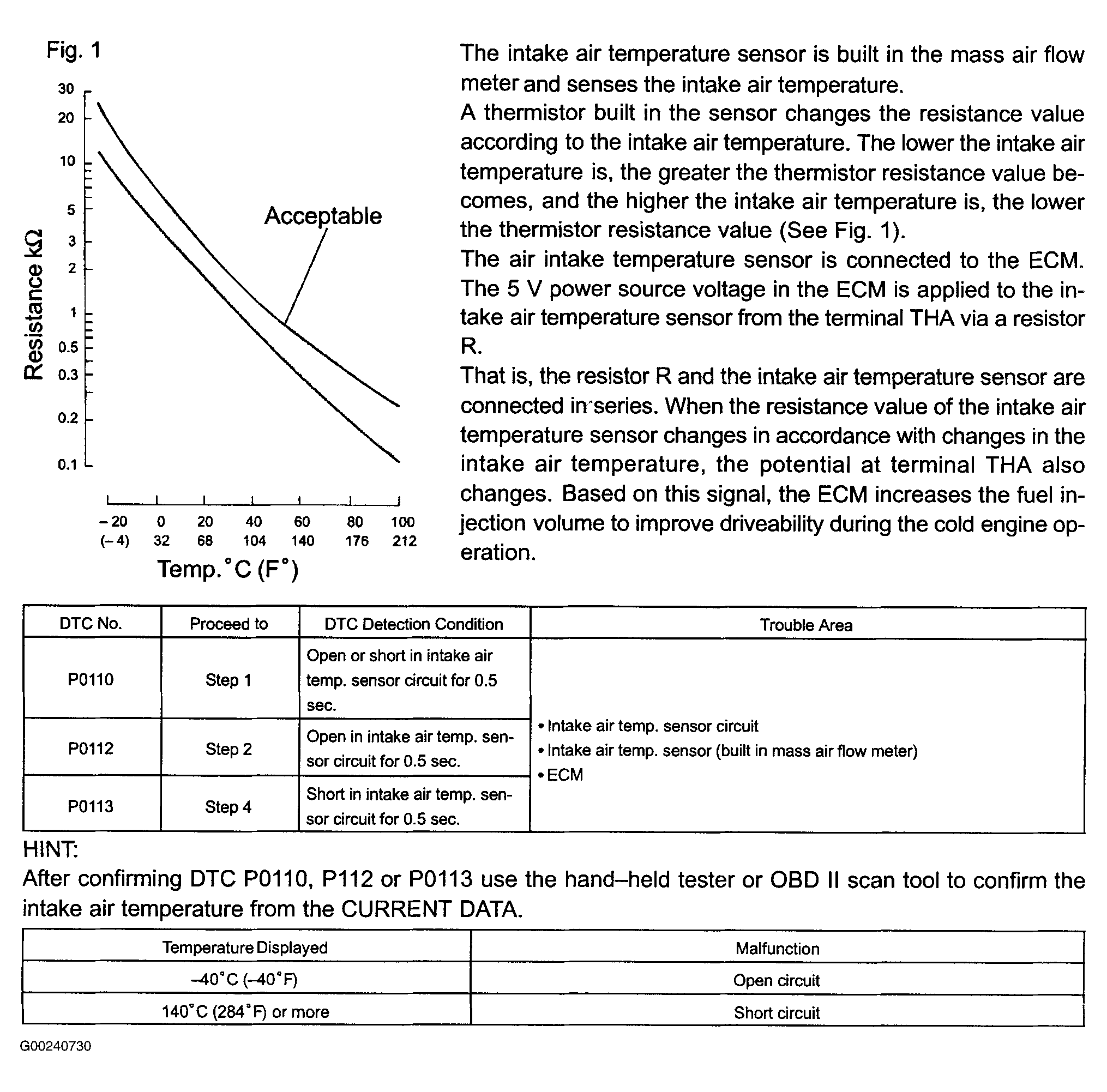 Fig 1: DTCs P0110, P0112 & P0113 Circuit Description
