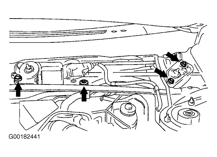 2. Install the windshield wiper link assembly with the 4 bolts. See Figure. Tighten bolts to specified torque. See TORQUE SPECIFICATIONS . Connect the connector.