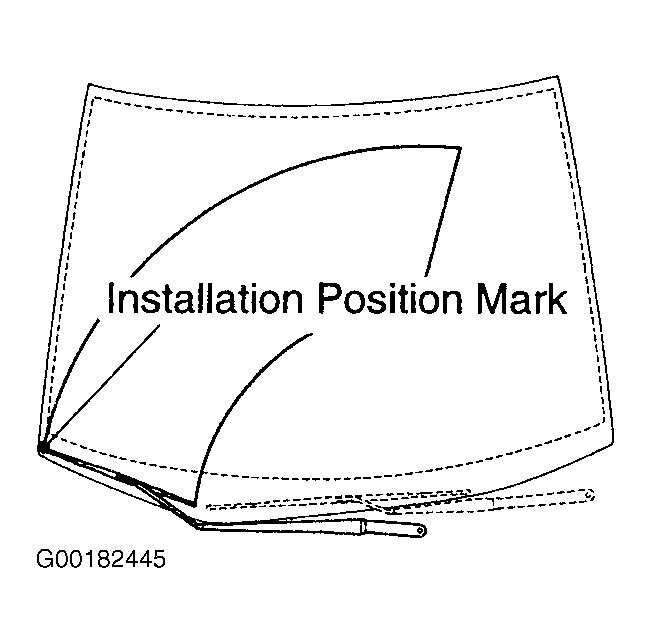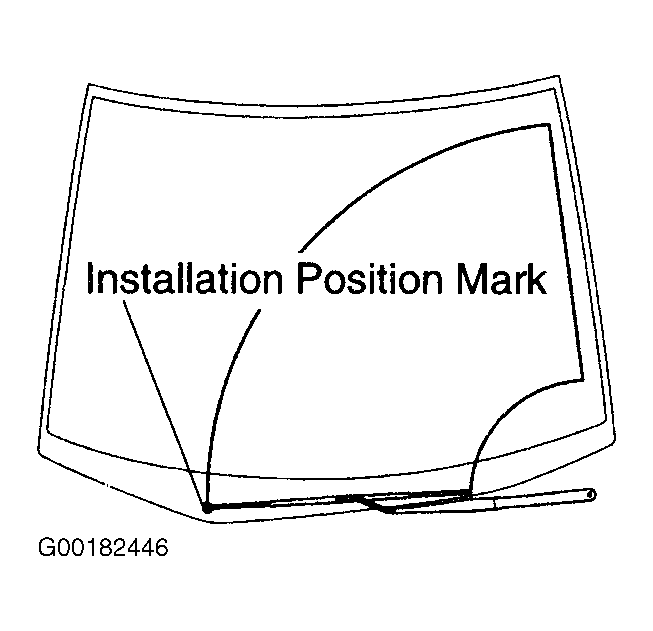 4. Install the LH front wiper arm. Clean the wiper pivot serration with the wire brush. Align the front wiper blade rear end with the mark and install the LH front wiper arm with the nut. See Fig 3. Tighten the nut to specified torque. See TORQUE SPECIFICATIONS . Operate the wiper while running the water or the washer fluid over the window and check the wiping condition and that the wiper does not hit against the vehicle body.