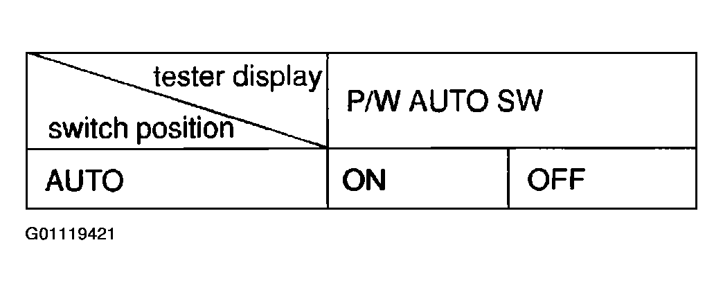 Check  : the power window master switch using DATA LIST.