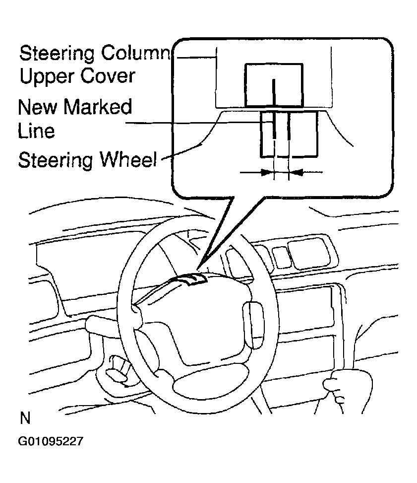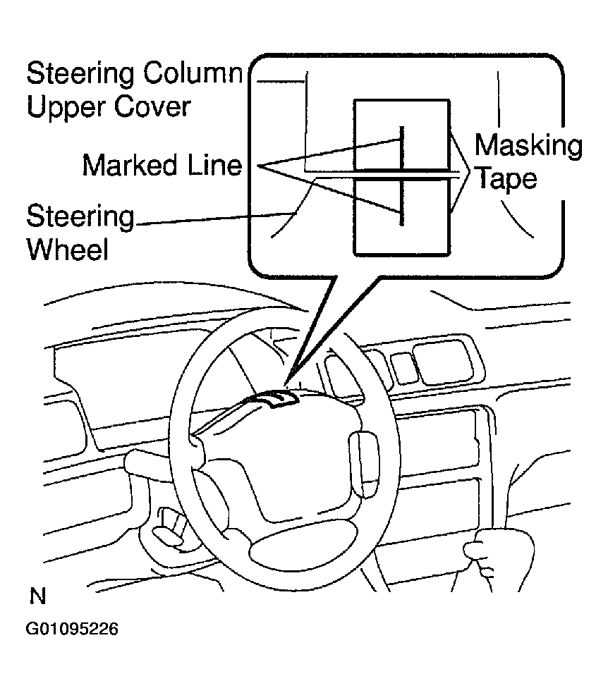- Apply masking tape on the top center of the steering wheel and steering column upper cover.