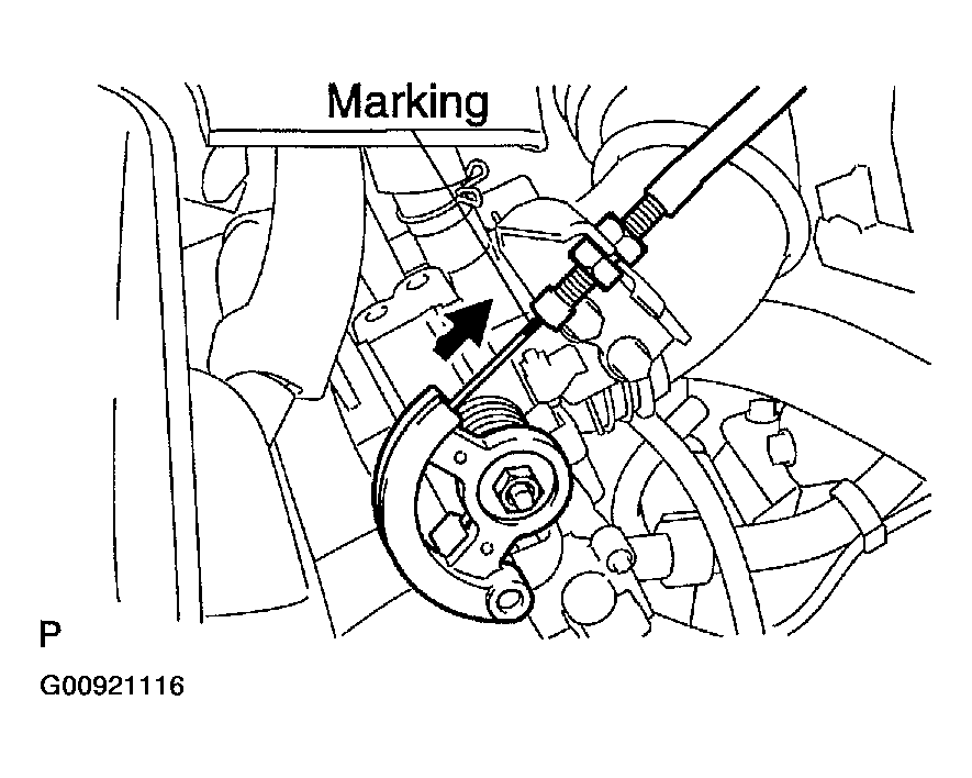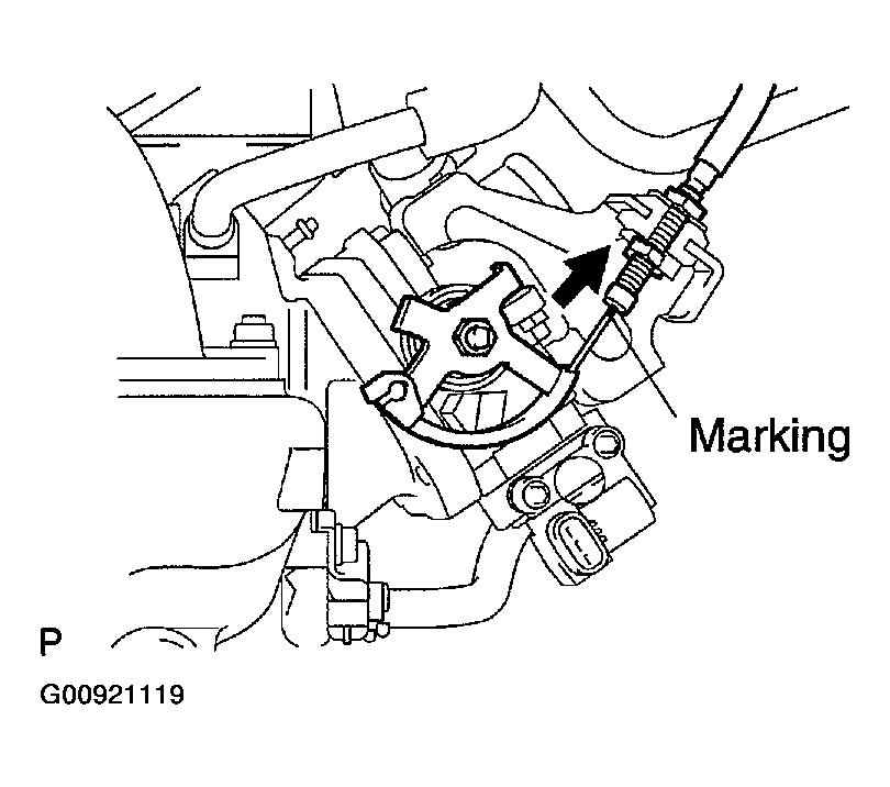 - Push the wire into the cable so as not to move the throttle link and put a mark on the position shown in Fig 1 .