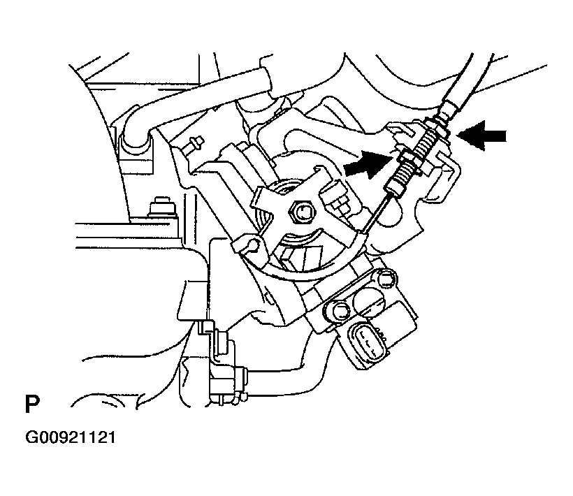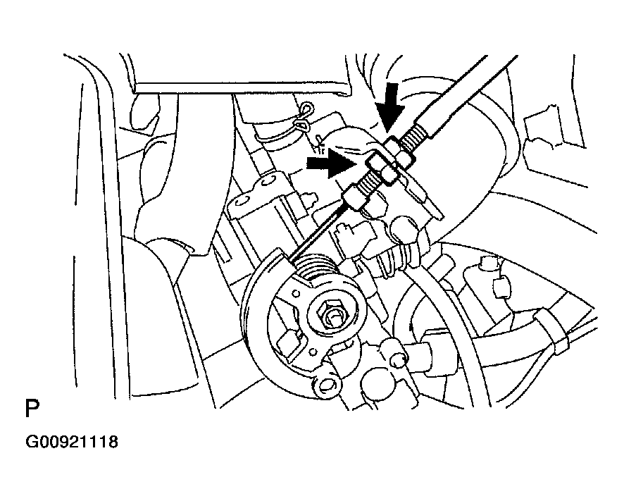- Remove the cruise control actuator cover and adjust the play in the accelerator control cable assy by changing the double nut position.