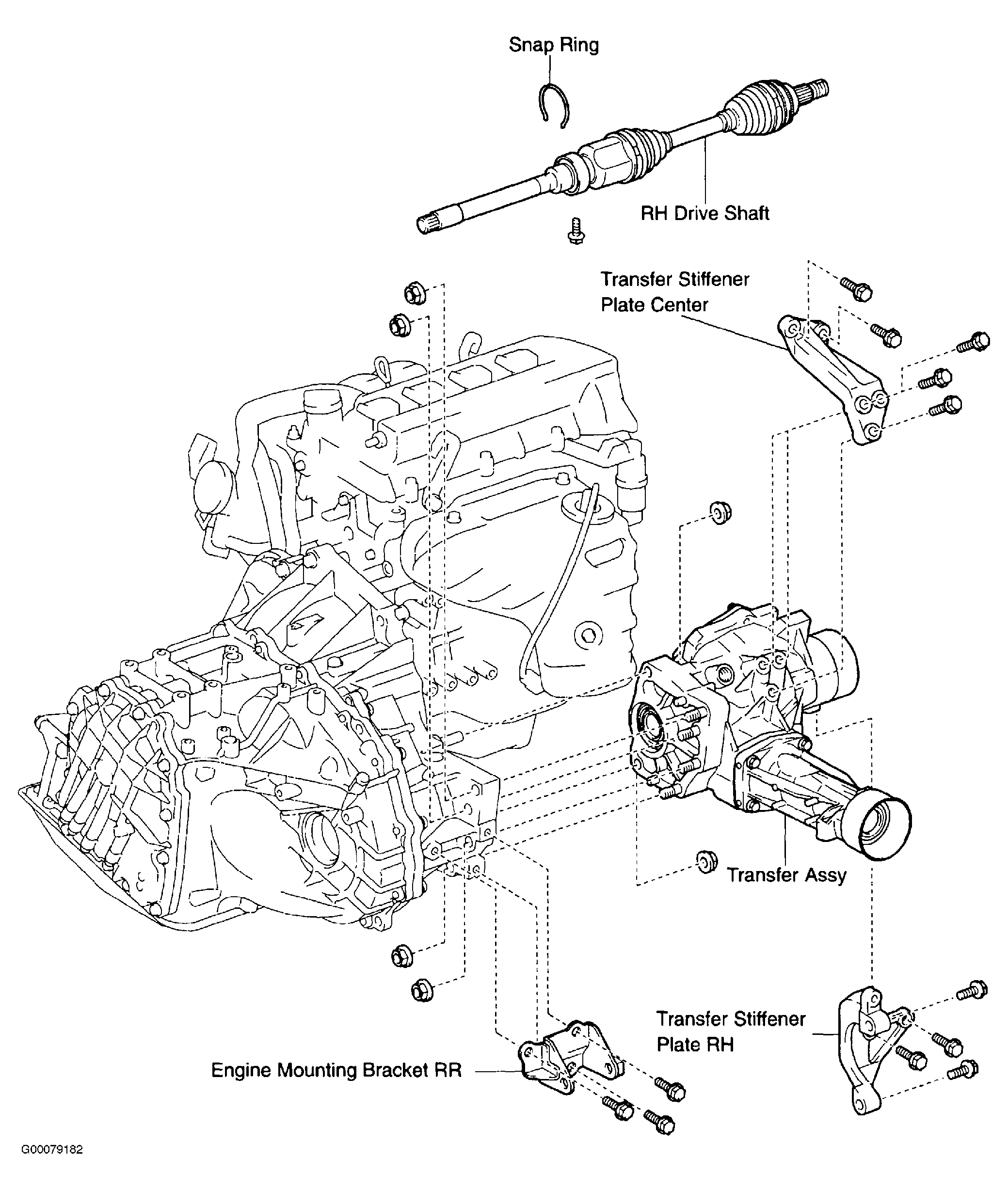 - Install transfer assembly as follows: install the transfer assembly with the 6 nuts to the transaxle assembly. See TORQUE SPECIFICATIONS .