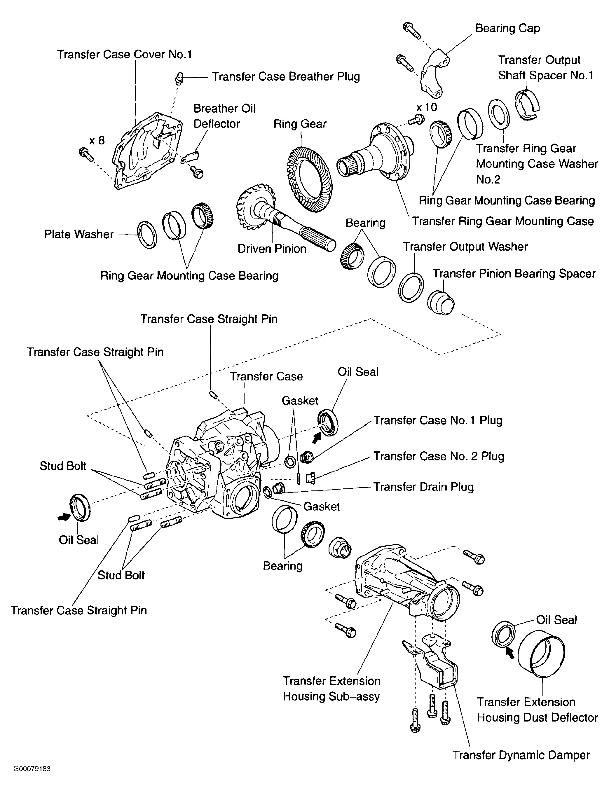 - Remove any sealant material and be careful not to drop oil on the contacting surfaces of the transfer case cover No. 1 and the transfer case.