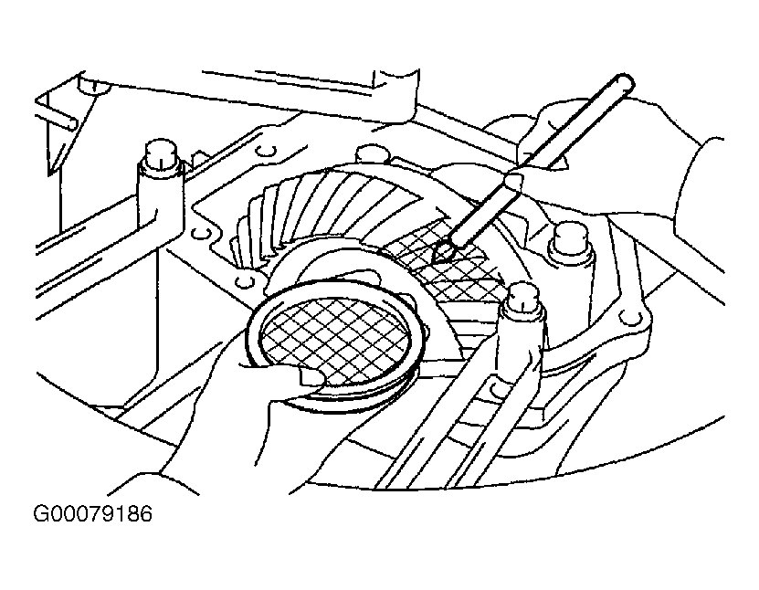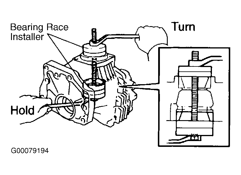 - Using appropriate adapter and a press, press the ring gear mounting case LH inner race onto the ring gear mounting case.