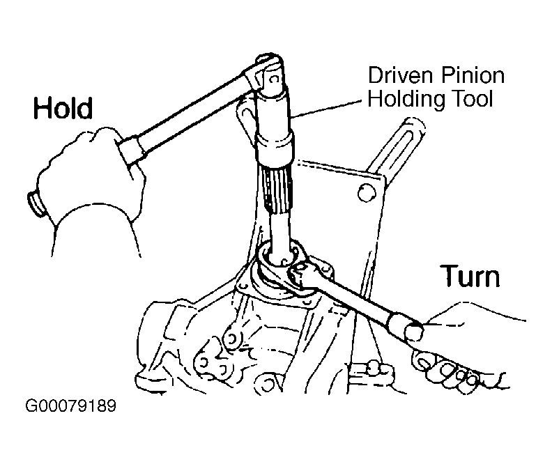 - Secure driven pinion with Drive Pinion Holding Tool (09556-16030). See Figure. Install a new gear nut. Tighten nut to 191-262 ft. lbs. (260-355 N.m).