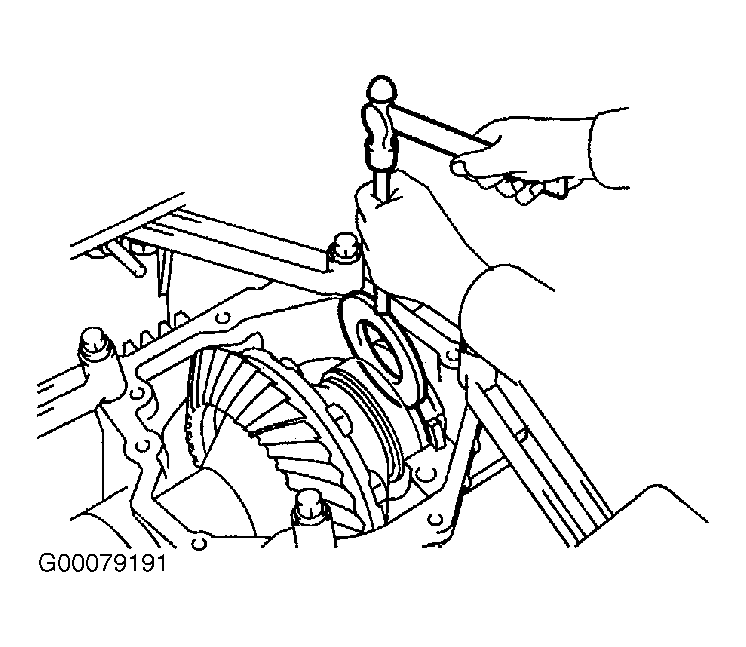 NOTE: Do not stake the nut until the final adjustment of the preload, tooth contact and backlash is completed. - Install the driven pinion to the case.