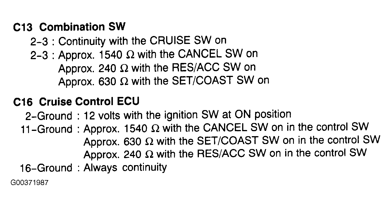 For ECU and combination switch terminal resistance values, see illustration. See Fig 1.