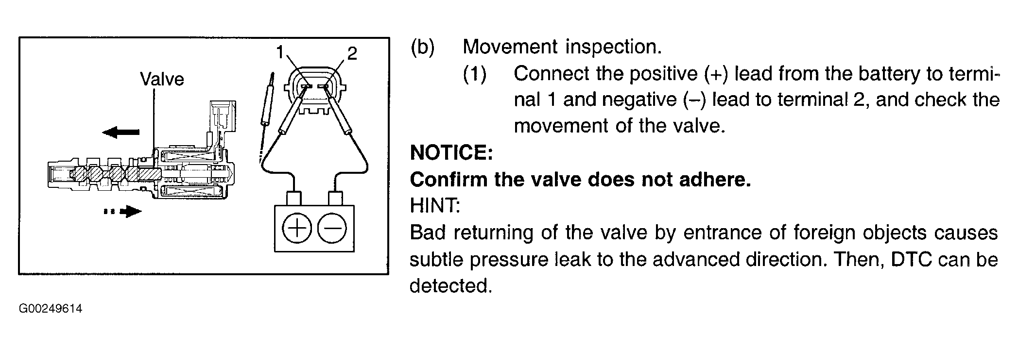 Fig 1: Testing Variable Valve Lift Oil Control Valve (Corolla, Highlander, Matrix, MR2, Prius & RAV4)