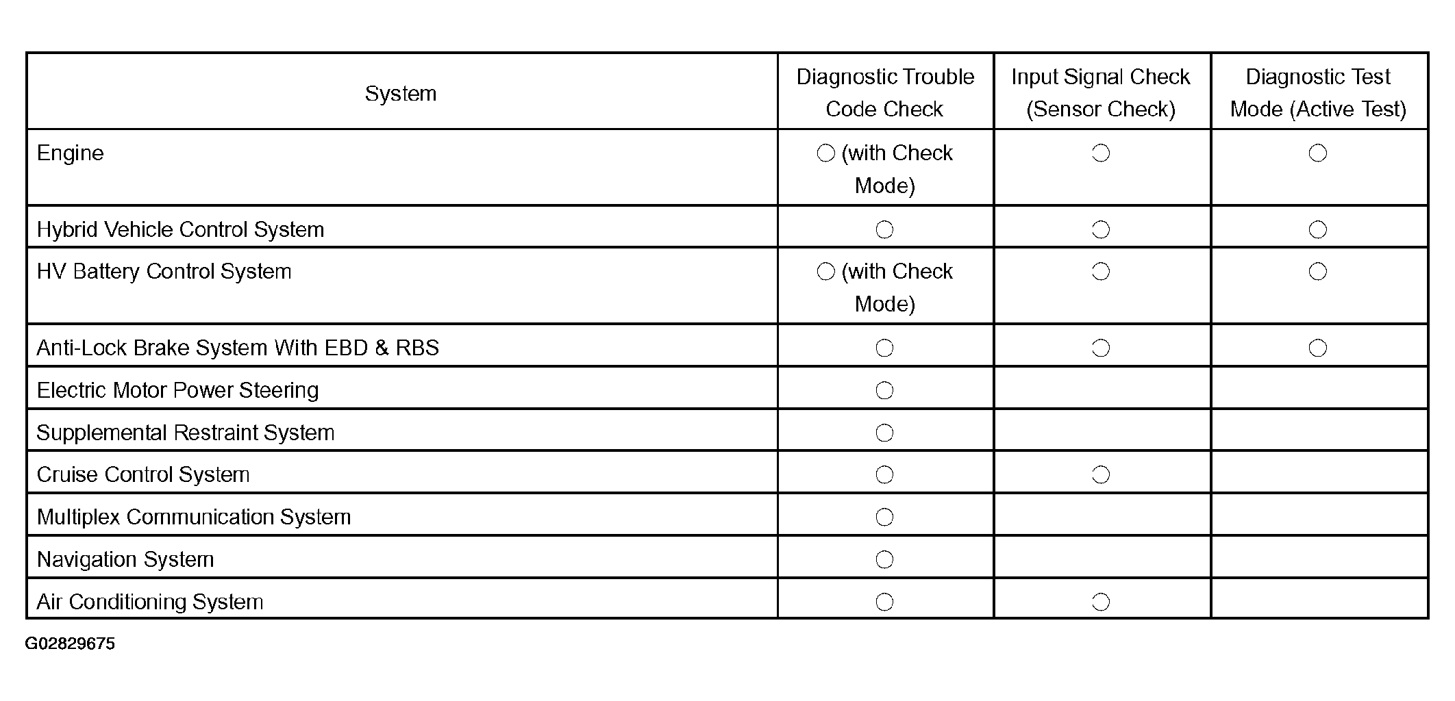 The diagnostic system in the PRIUS fulfills various functions. The first function is the Diagnostic Trouble Code Check in which a malfunction in the signal circuits to the ECU is stored in code in the ECU memory at the time of occurrence, to be output by the technician during troubleshooting. Another function is the Input Signal Check which checks if the signals from various switches are sent to the ECU correctly.