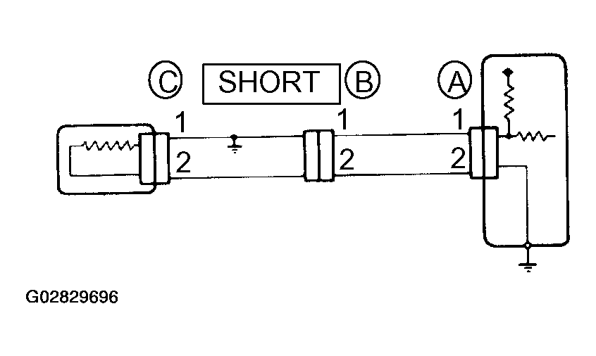 Therefore, it is found out that there is a short circuit between terminal 1 of connector "B2" and terminal 1 of connector "C".