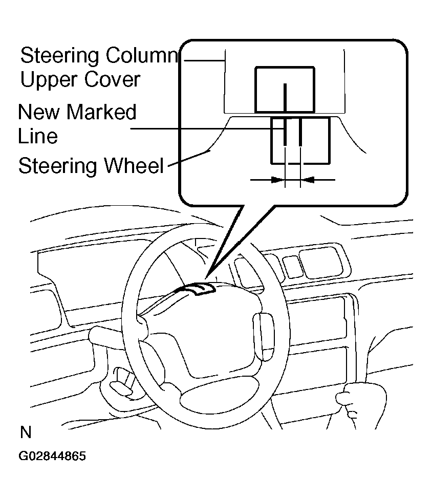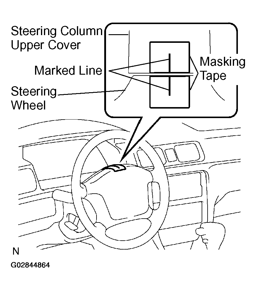 - Apply masking tape on the top center of the steering wheel and steering column upper cover.