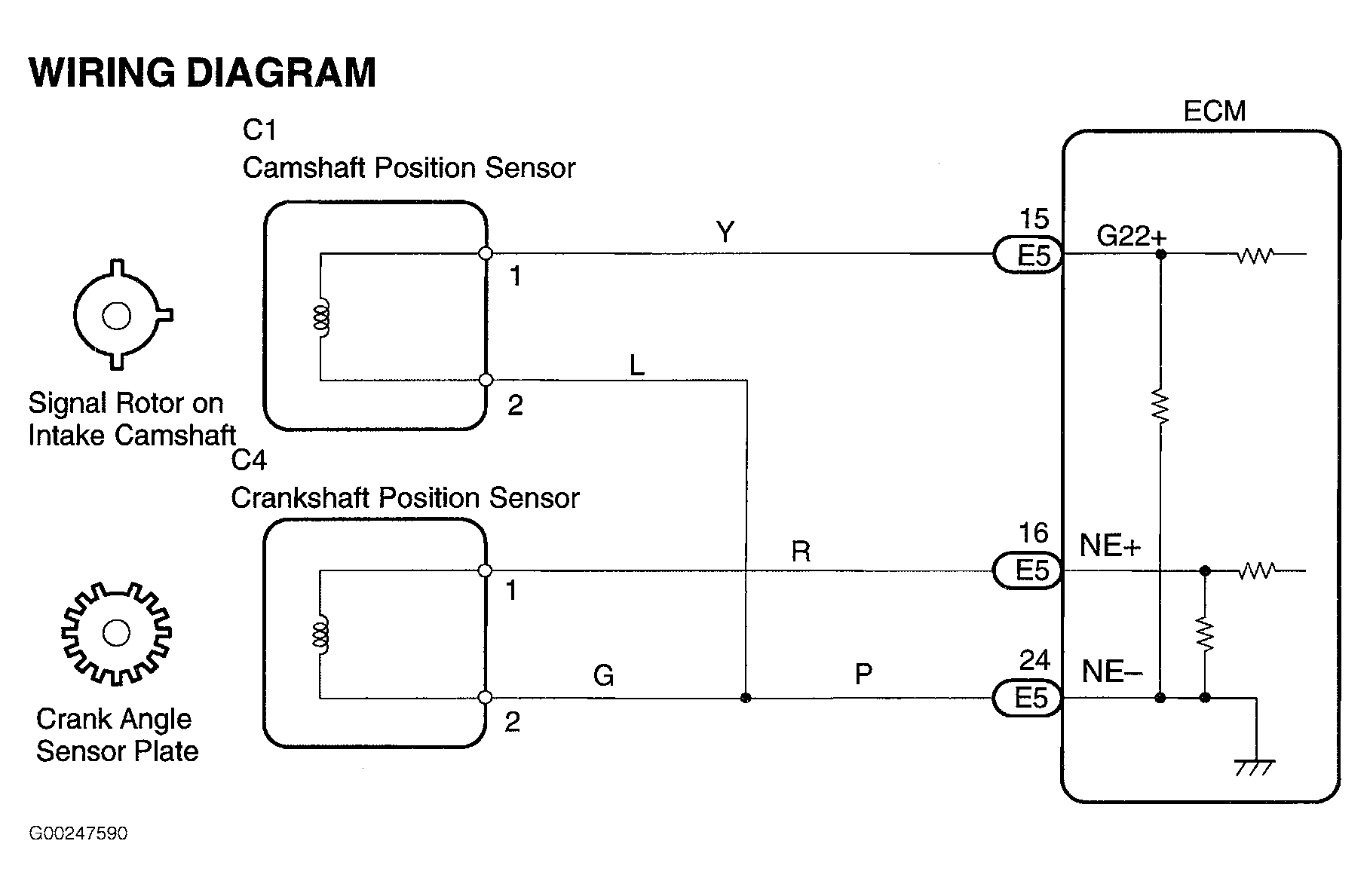 When access to, or replacement of ECM is necessary, Engine Control Module (ECM) is located behind glove box. See Figure. For ECM connector terminal view, see Figure. For CMP sensor circuit wiring diagram, see Figure.