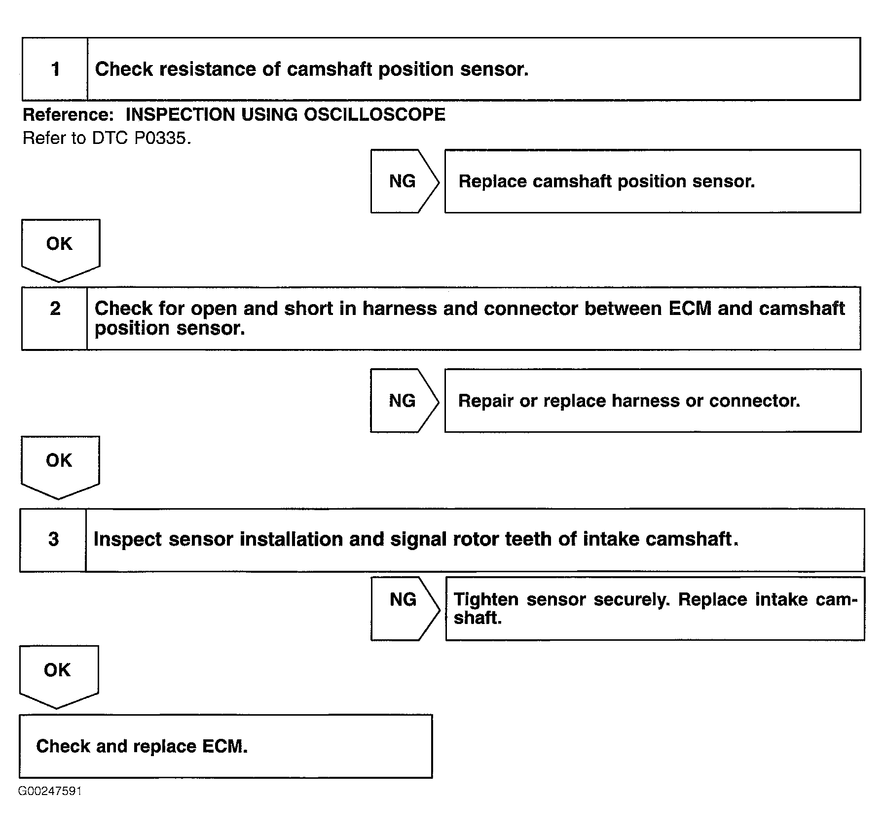 For diagnosis and repair procedure, see Fig 1. CMP sensor is located on rear of cylinder head.