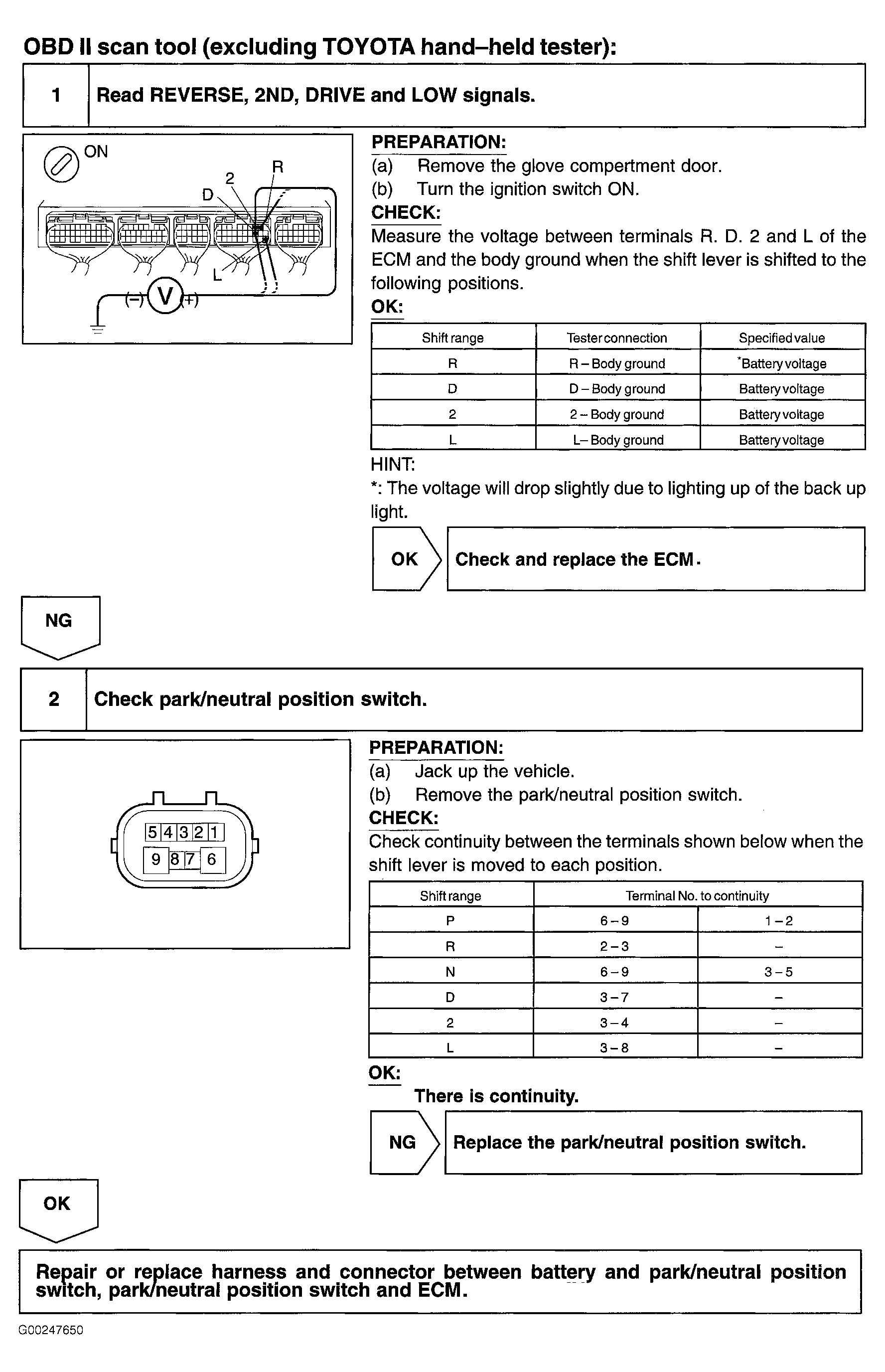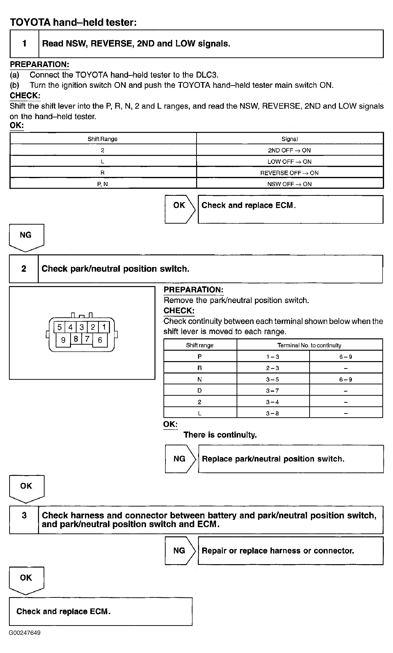 After confirming DTC P1780, use Toyota hand-held tester to access CURRENT DATA to confirm PNP switch signal. Using hand-held tester or scan tool, read FREEZE FRAME data. Freeze frame data records engine conditions when malfunction is detected.