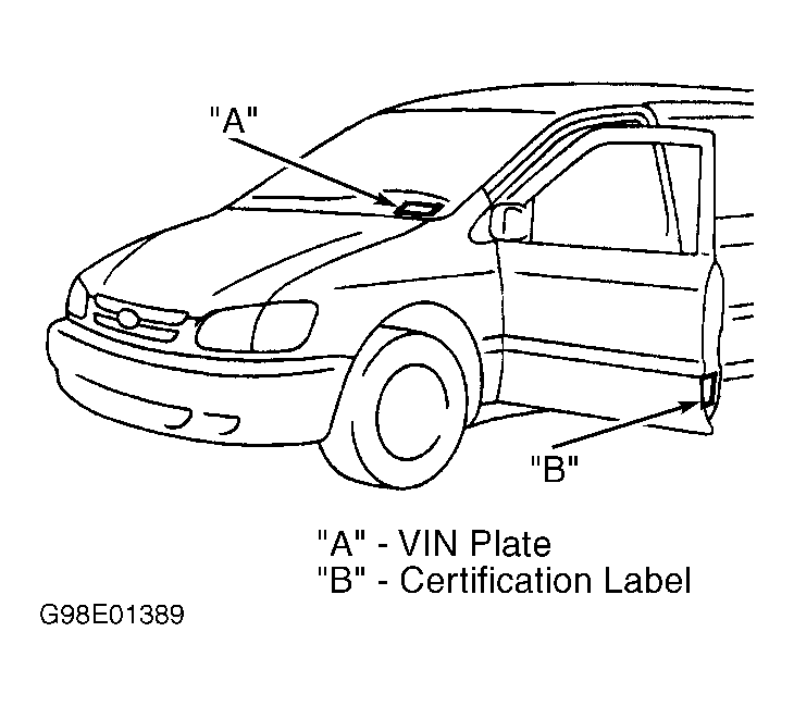(1) Engine may be identified by Vehicle Identification Number (VIN). VIN is located on VIN plate on driver's side of instrument panel. See Figure-Figure . Engine serial number is stamped on cylinder block. See Figure-Figure .