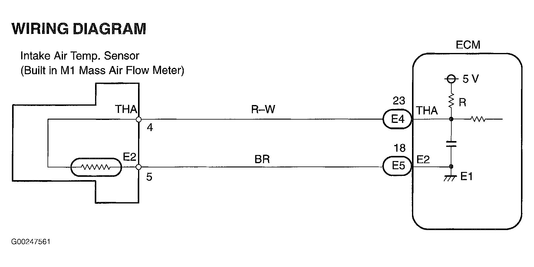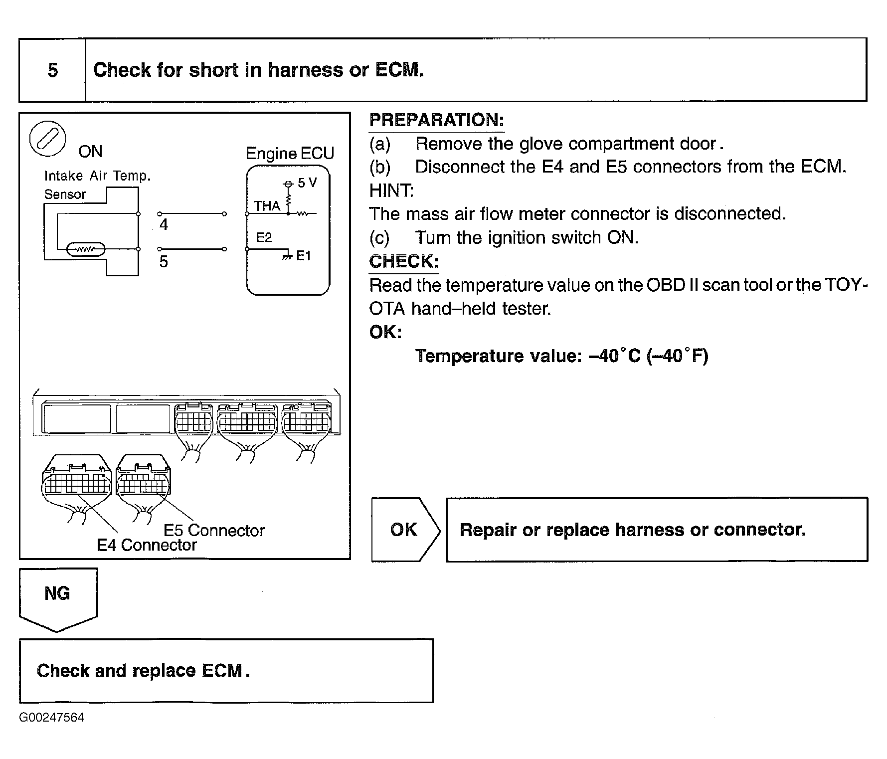 When access to, or replacement of ECM is necessary, Engine Control Module (ECM) is located behind glove box. See Figure. For ECM connector terminal view, see Figure. For IAT sensor circuit wiring diagram, see Fig 4.